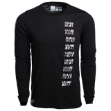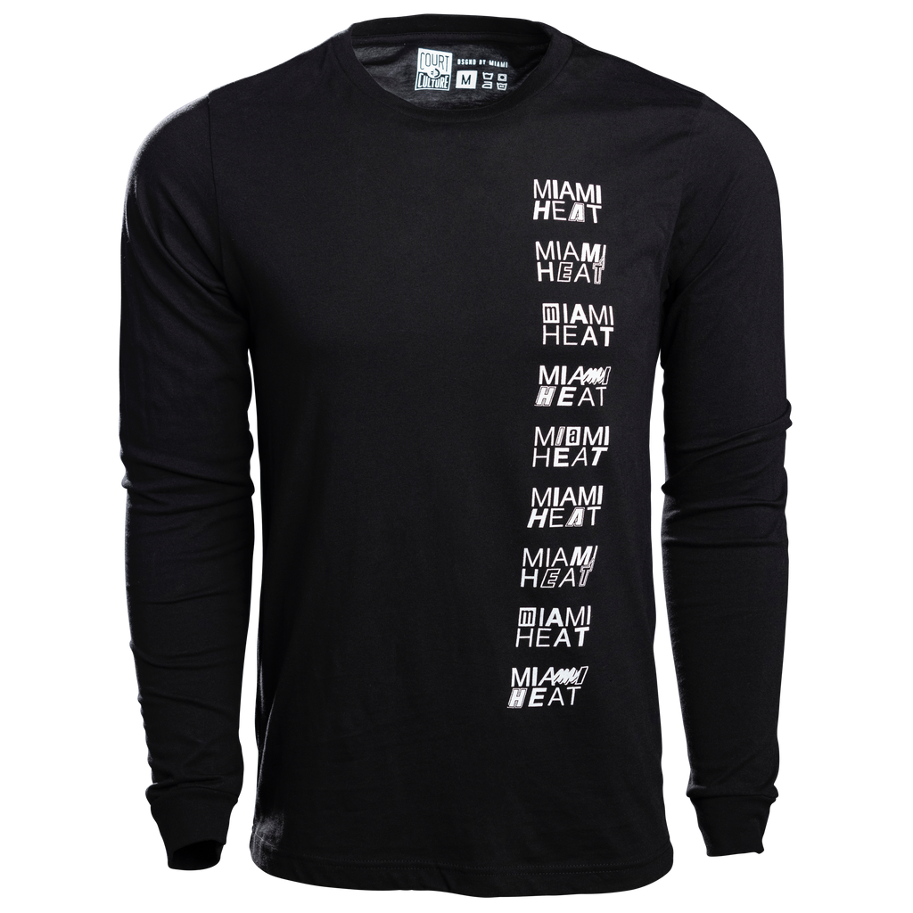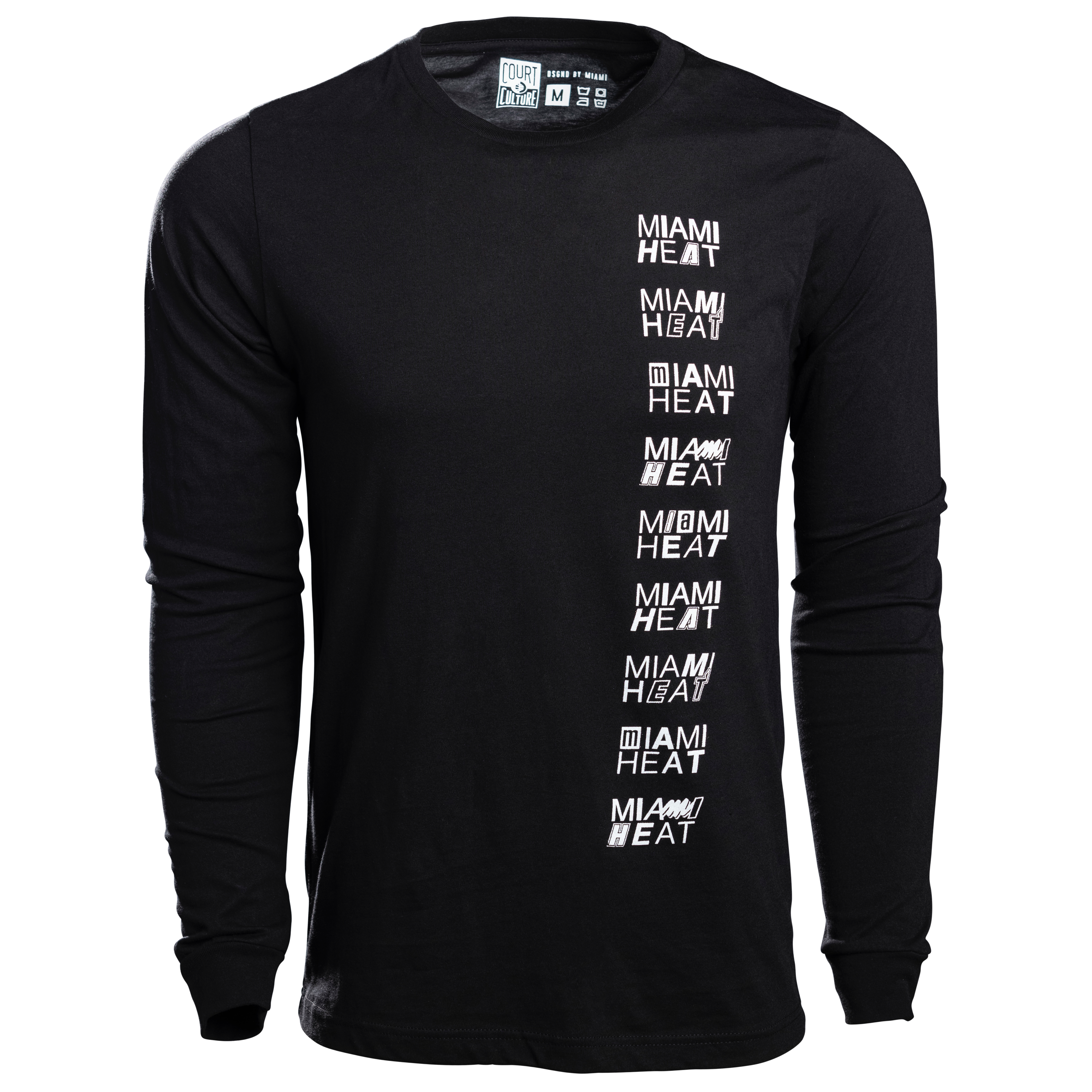 Black Court Culture Mashup unisex long-sleeve shirt with vertical white Miami HEAT logo text. - Court Culture Mashup Logo Unisex Longsleeve