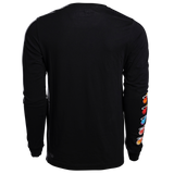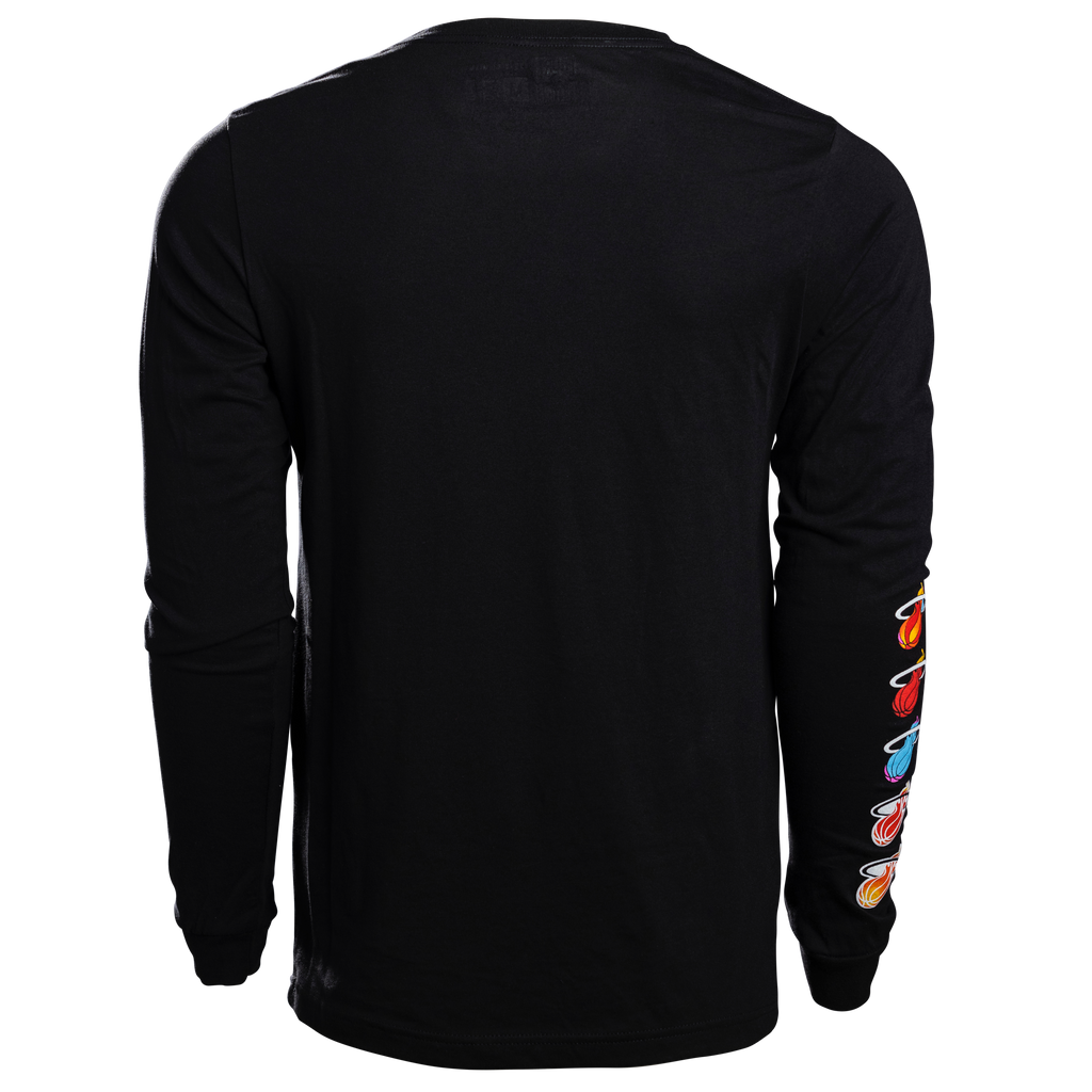 Black long-sleeve unisex shirt with colorful Miami HEAT mashup logos down the right sleeve. - Court Culture Mashup Logo Unisex Longsleeve