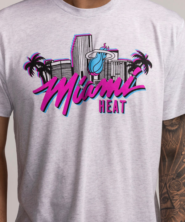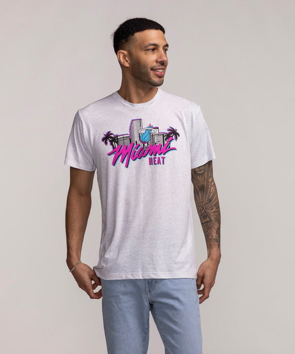 The Ho Ho HEAT Tee by Item Of The Game is a black cotton shirt with the Miami Heat logo, a Santa beard, halo, snowflakes, and team icons; standard fit and machine wash cold.