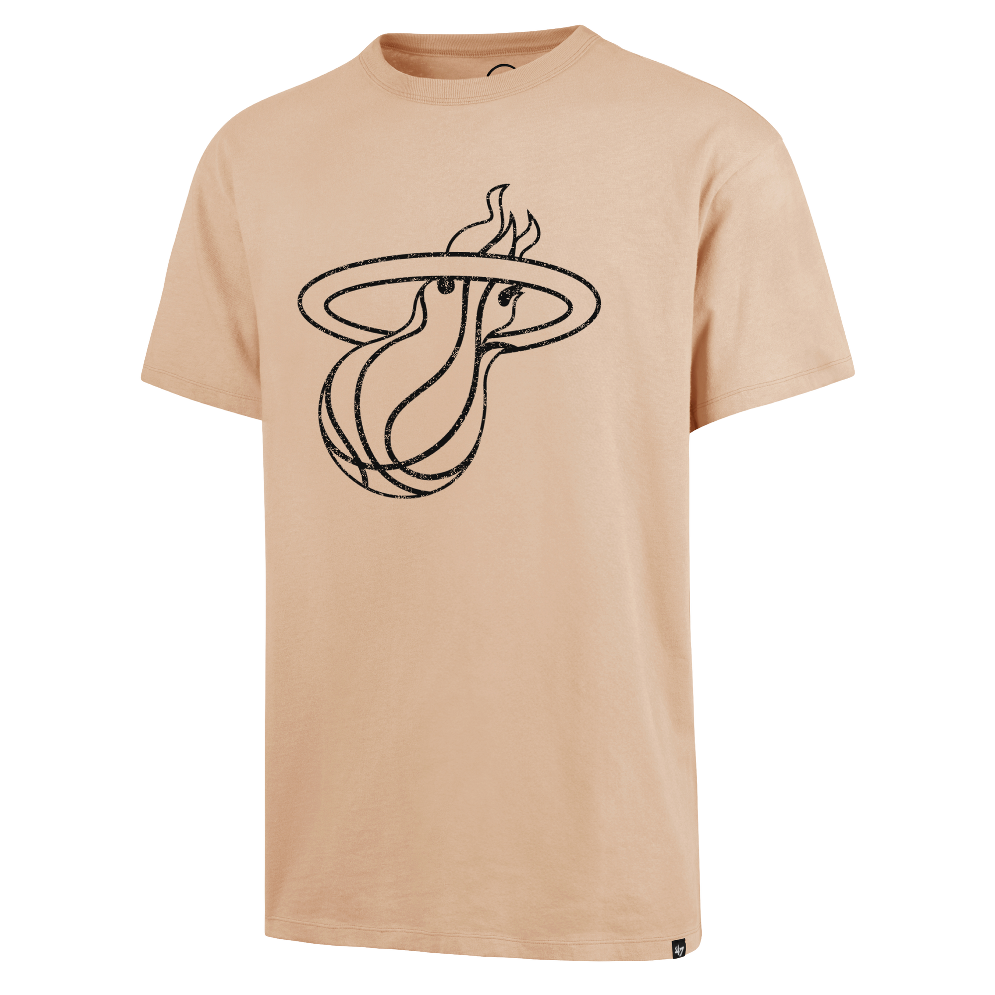 Khaki short-sleeve tee with black Miami HEAT flaming basketball logo imprint on front. - '47 Brand Miami HEAT Logo Imprint Tee