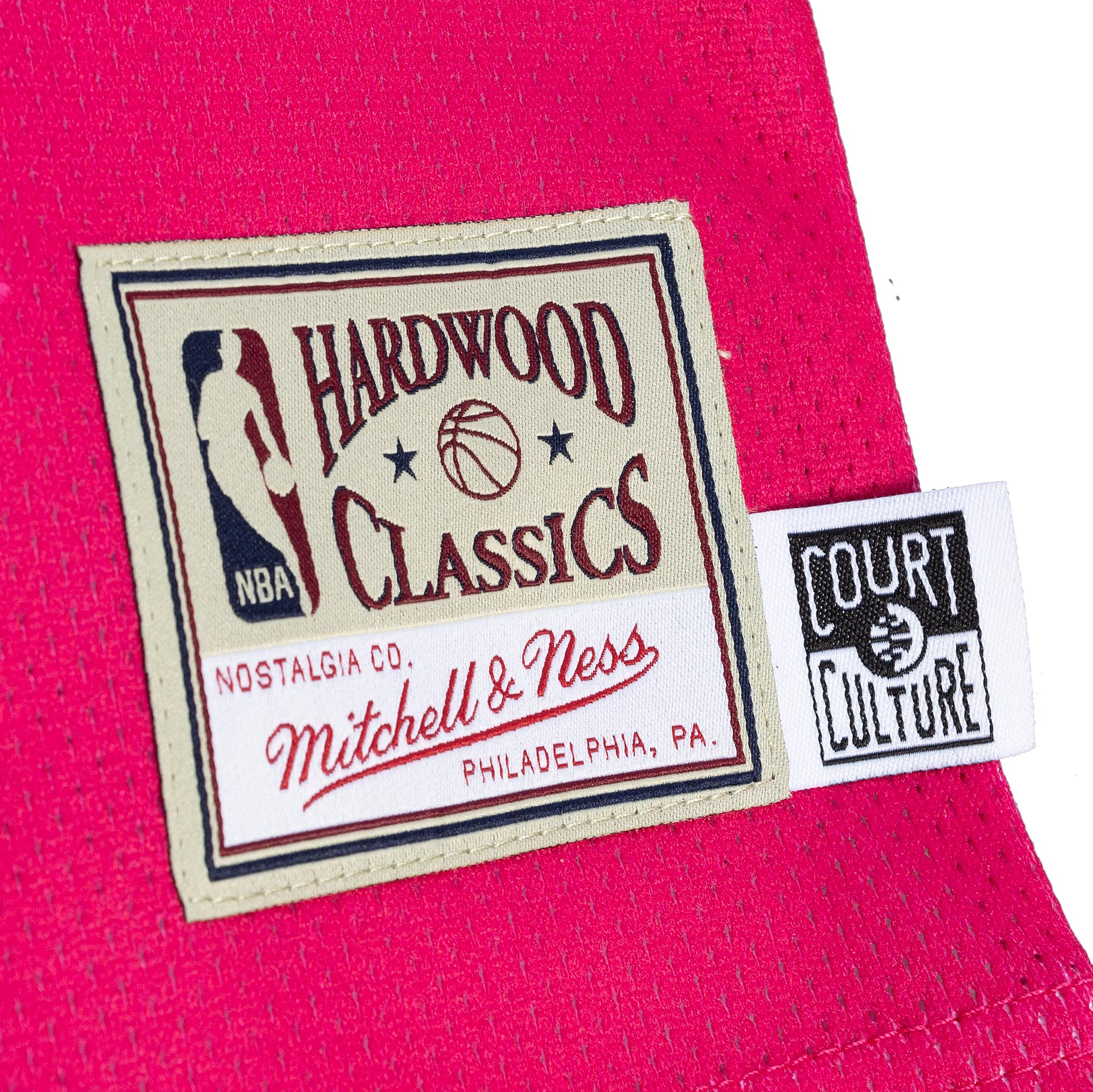 Red mesh crop tank with Hardwood Classics NBA patch and Court Culture tag. - Court Culture X Mitchell and Ness Floridians Mesh Crop Tank