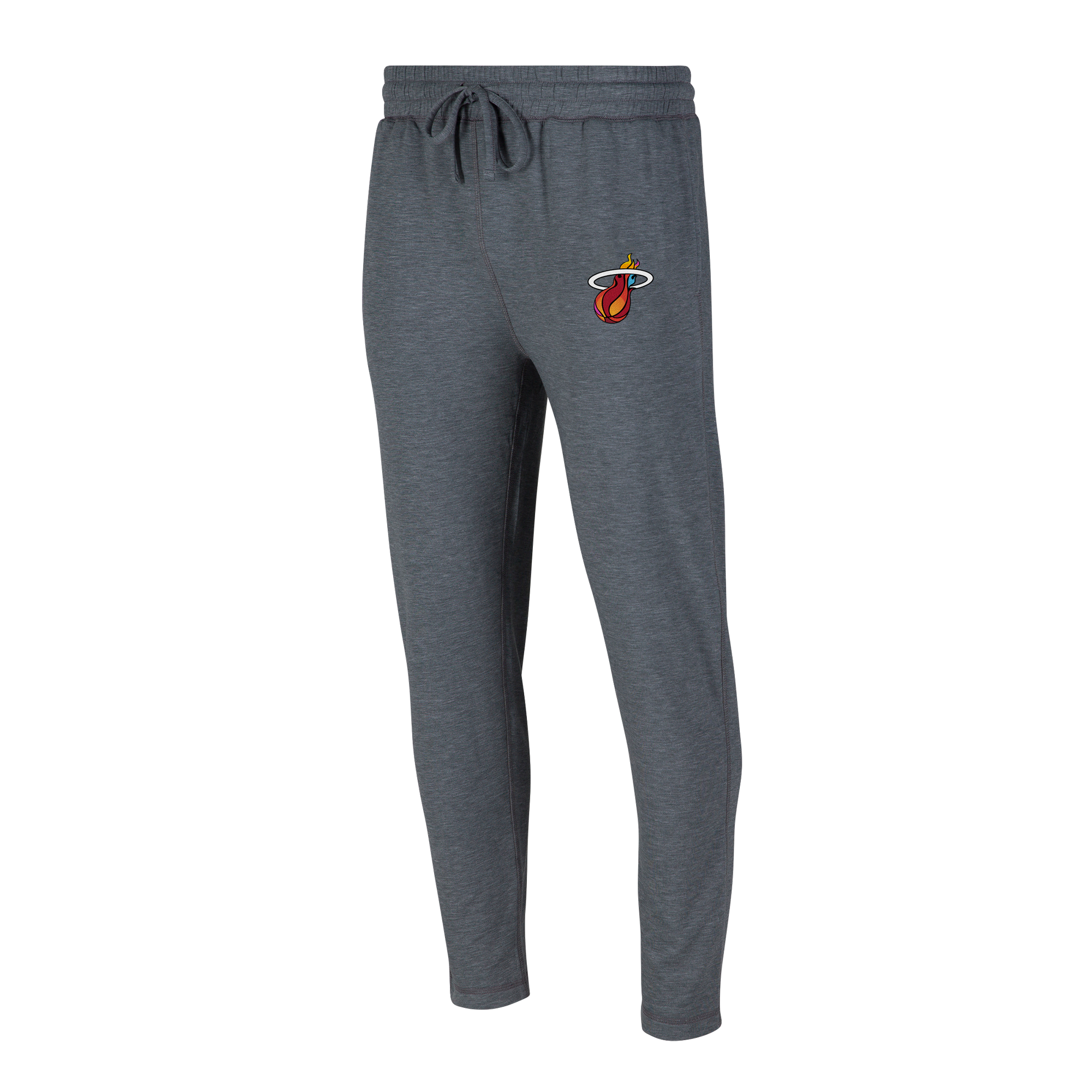 Grey tapered jogger pants with Miami Heat logo embroidered on left thigh and adjustable drawstring waistband. - Concepts Sport Miami Mashup Vol. 2 Grey Pants