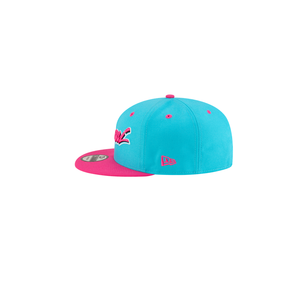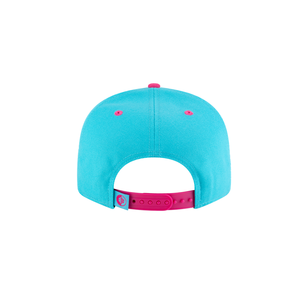 Blue and pink Court Culture Original Vice Miami snapback cap with Miami HEAT-inspired script logo and adjustable back strap. - Court Culture Original Vice