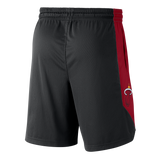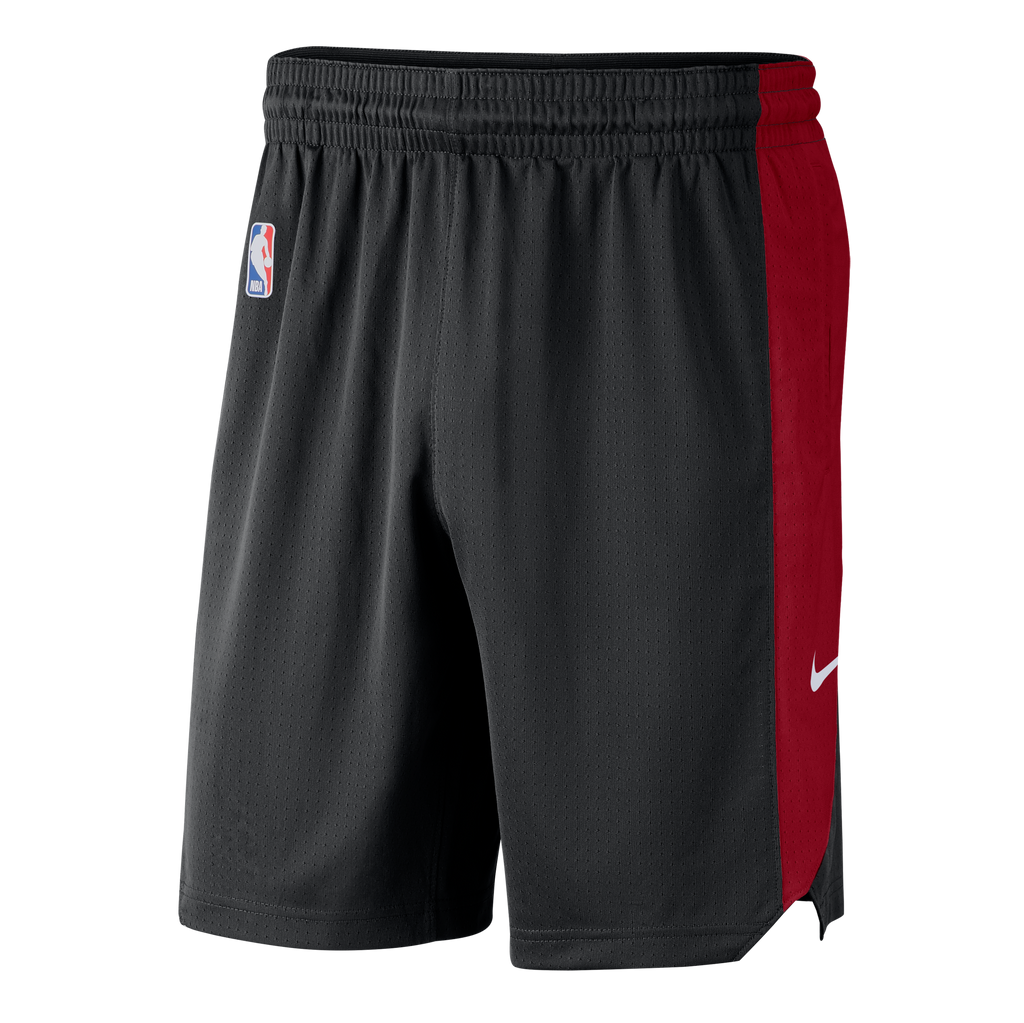 Black and red Nike Miami HEAT practice shorts with white swoosh logo on side panel. - Nike Miami HEAT Practice Shorts