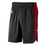 Black Nike Miami HEAT practice shorts with red side panels and Miami HEAT logo on right leg. - Nike Miami HEAT Practice Shorts