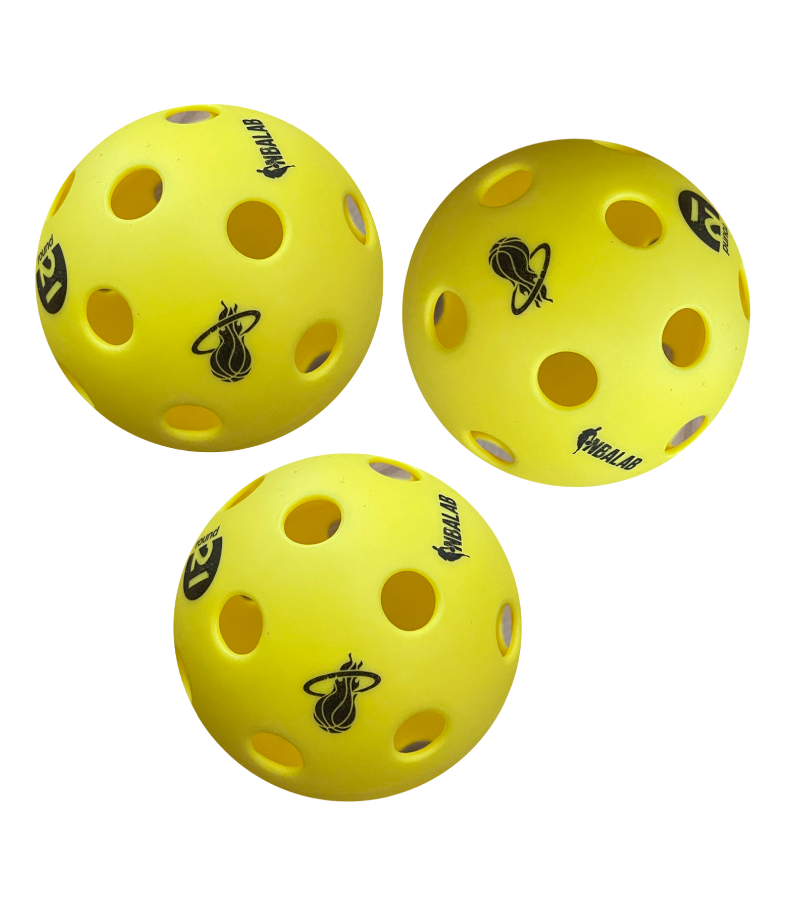 The special edition 3-Ball Set of Miami HEAT Pickleballs features your favorite NBA team and is constructed with 40 machine-drilled holes for a balanced flight pattern and tight reliable spin.