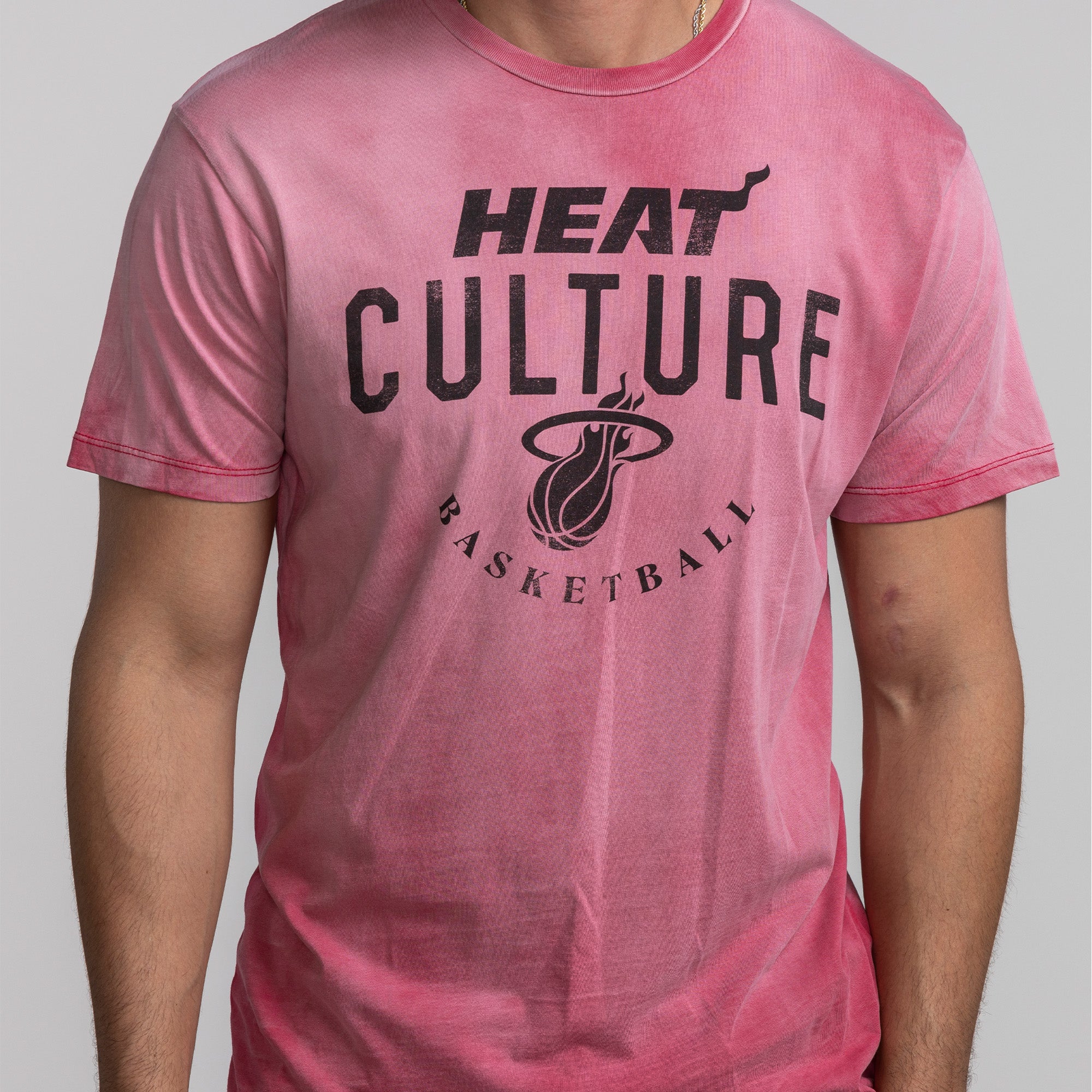 Red ombre Miami HEAT Culture short-sleeve tee with black wordmark and basketball logo. - Sportiqe HEAT Culture: Blood Red Wordmark Tee