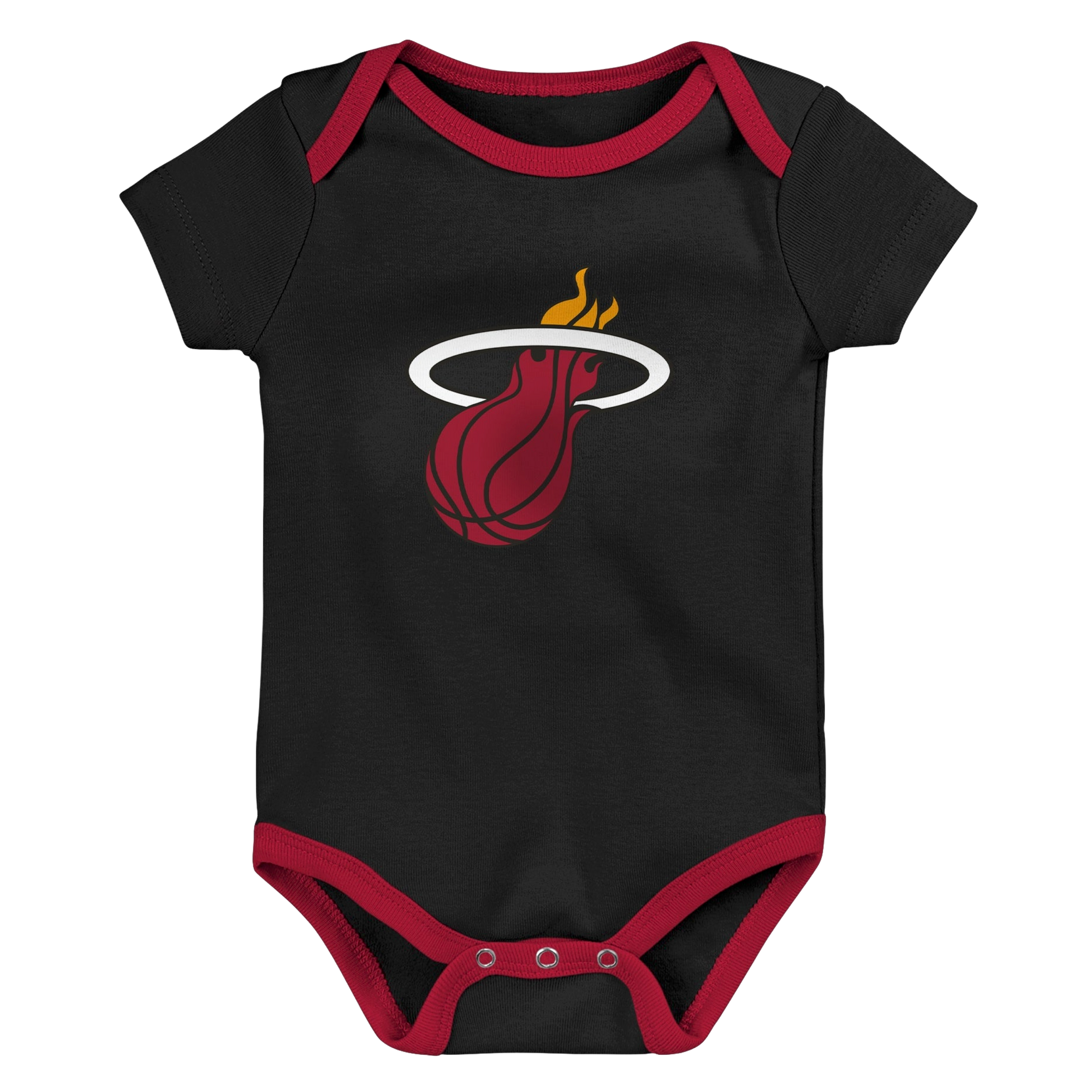 Black newborn bodysuit with red trim and Miami HEAT logo on the chest.