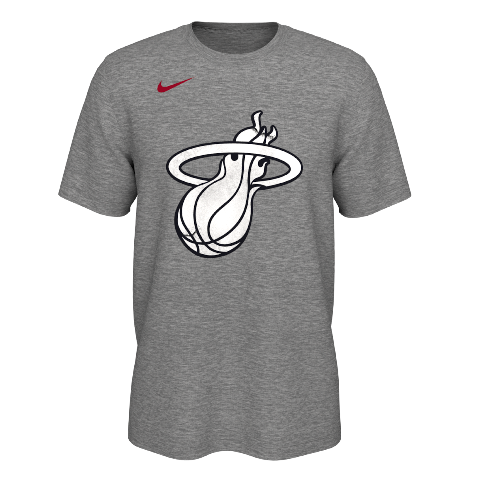 Grey Nike tee with white Miami HEAT flaming basketball logo and small red Nike swoosh on chest. - Nike HEAT Culture Grey Logo Tee