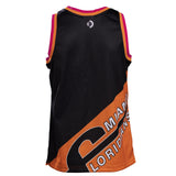 Miami HEAT mesh tank top with bold black, orange, and white color blocking and stylized Floridians graphic. - Court Culture X Mitchell and Ness Floridians Mesh Tank