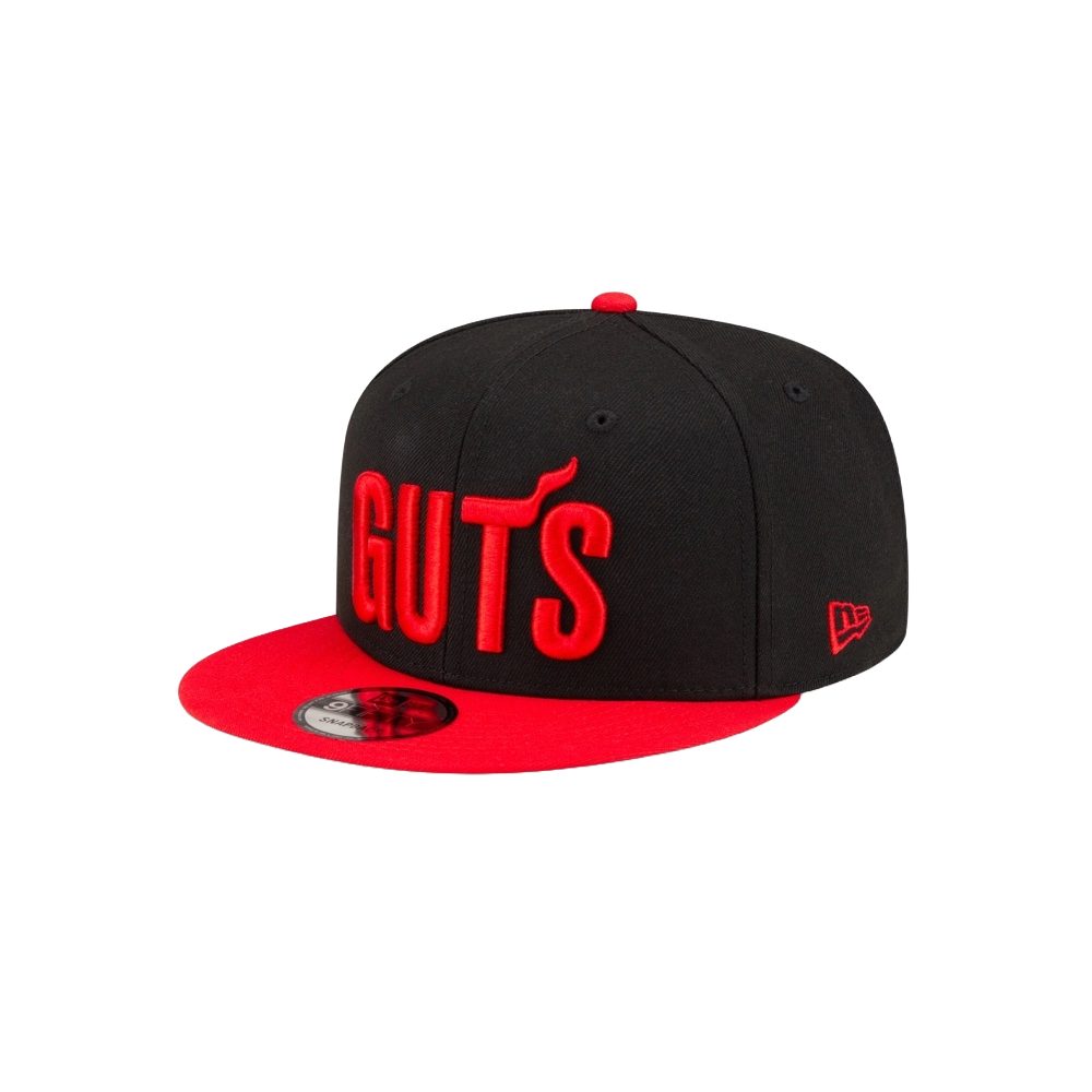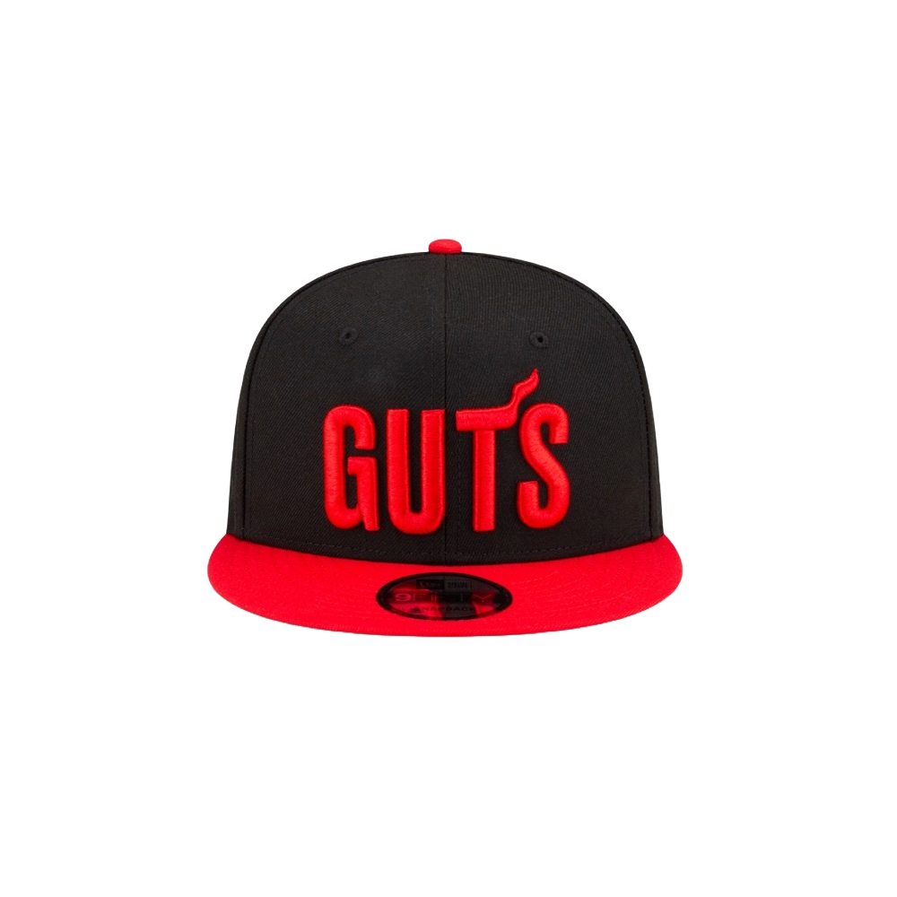 Designed in collaboration with New Era, this snapback features the “GUTS” wordmark set atop a black fabric with red brim.