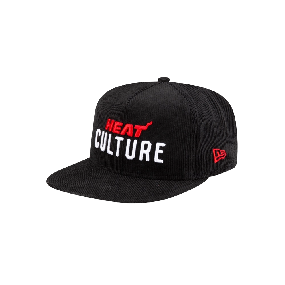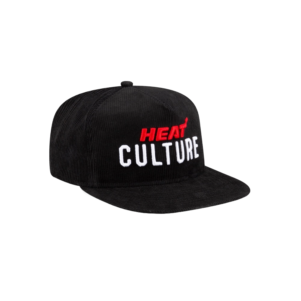 Designed in collaboration with New Era, this golfer features the “HEAT Culture” wordmark set atop a black corduroy fabric.