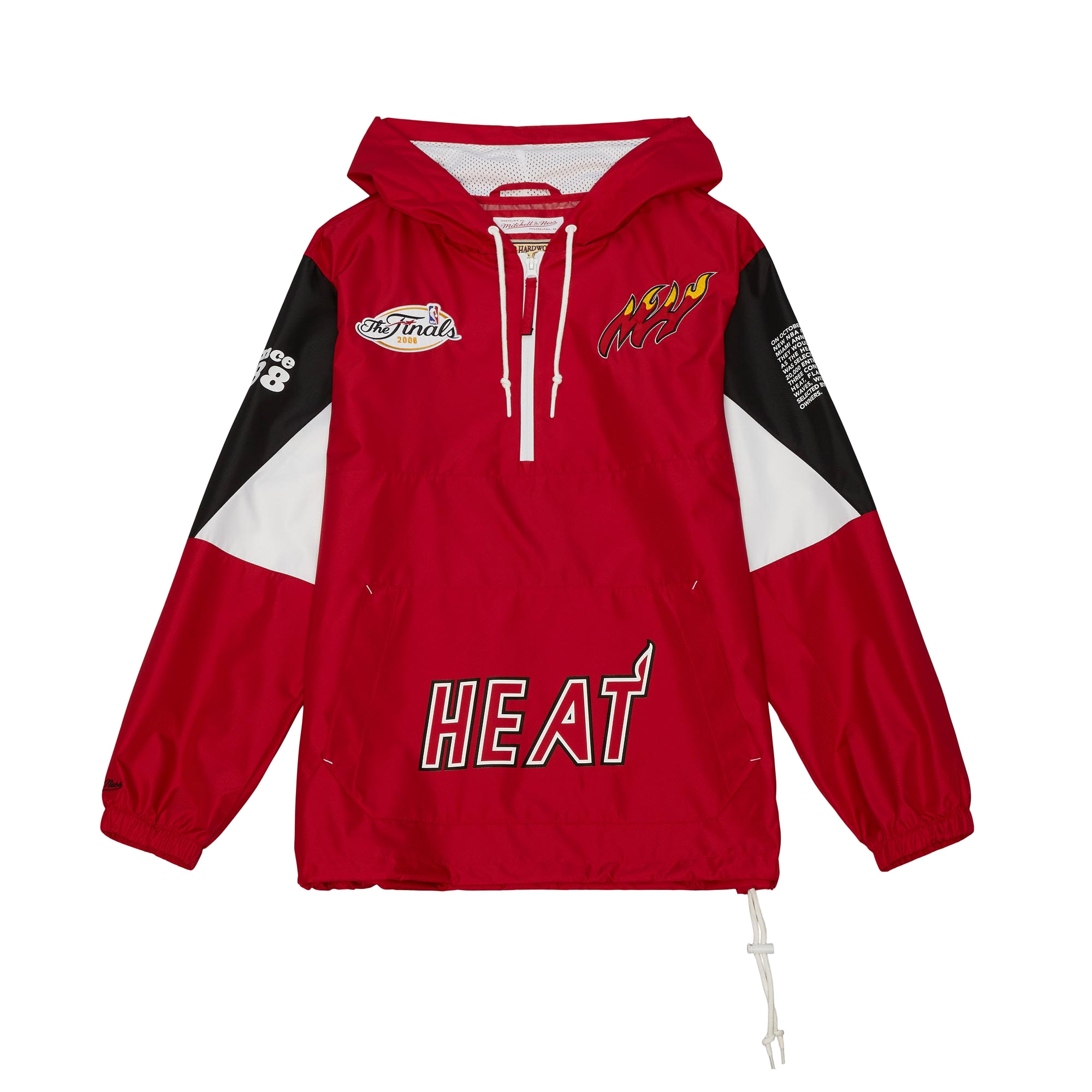 Red Mitchell and Ness Miami HEAT 2006 NBA Finals embroidered patch on anorak pullover. - Mitchell and Ness Miami HEAT Origins Anorak Pullover