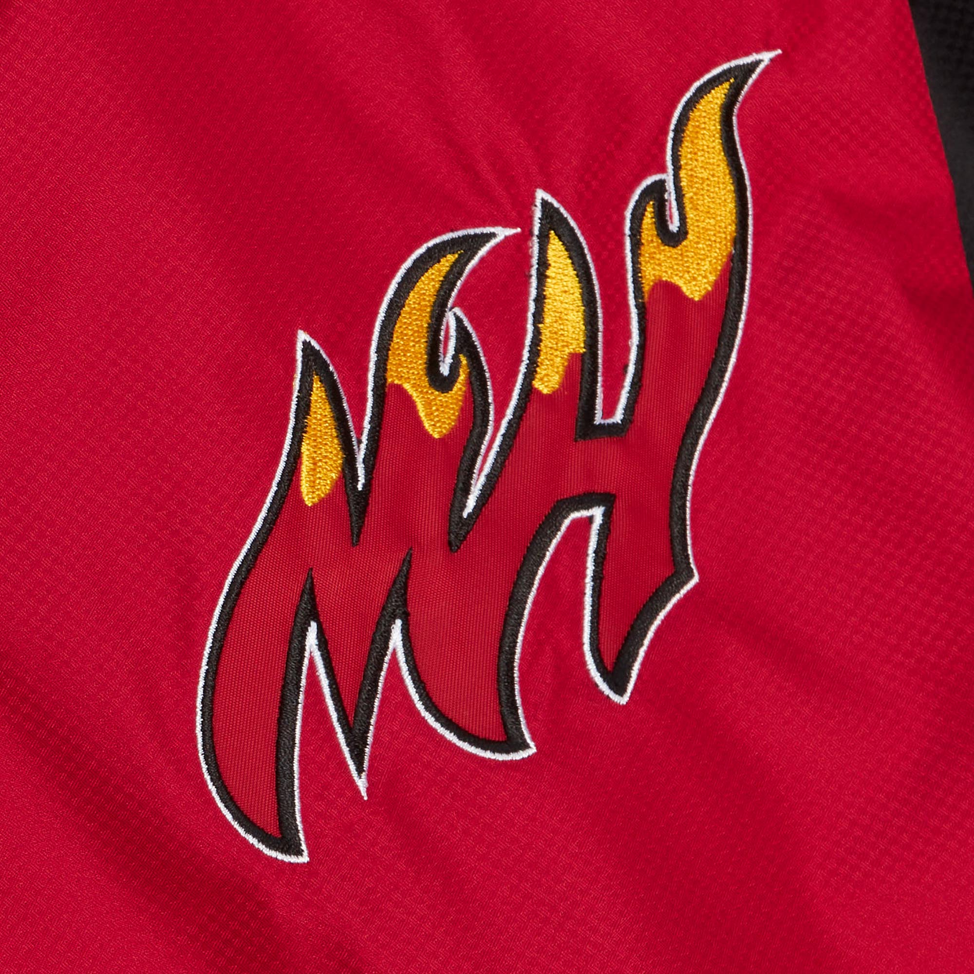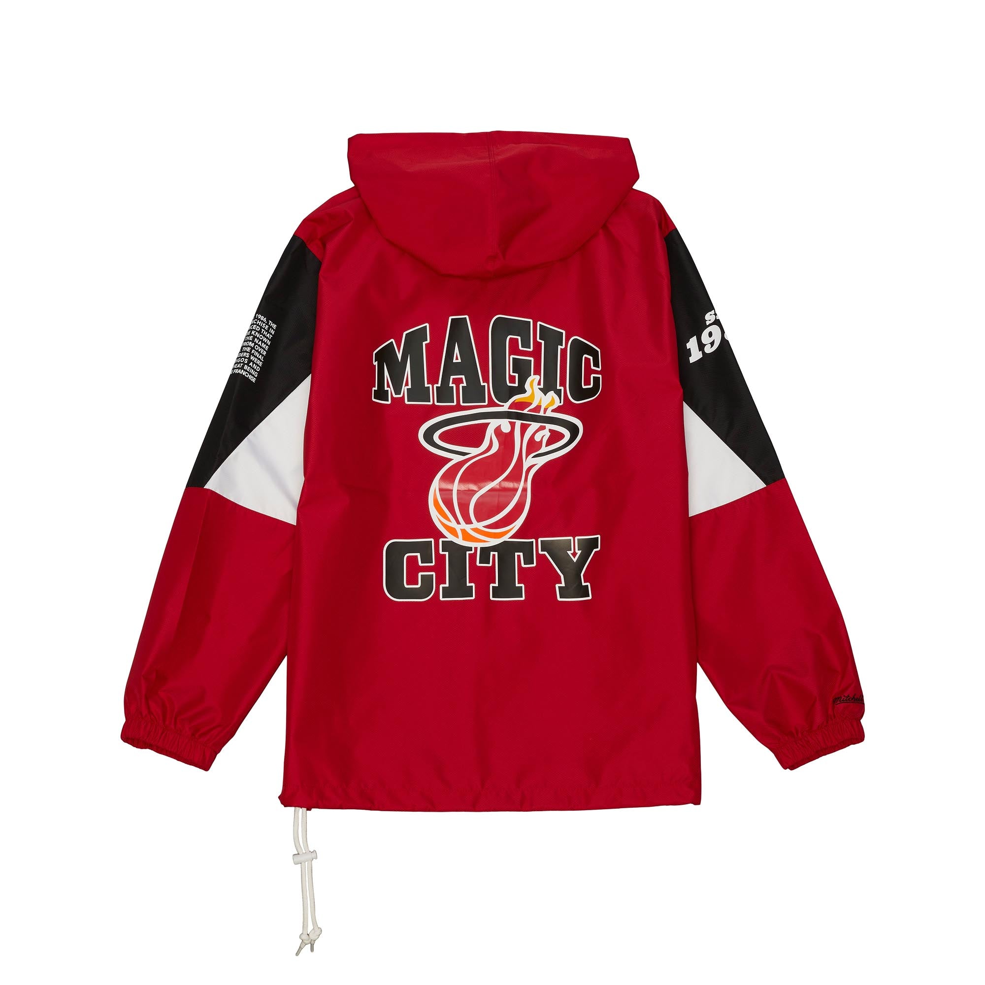 Red and black Miami HEAT Magic City anorak pullover with hood and white sleeve accents. - Mitchell and Ness Miami HEAT Origins Anorak Pullover
