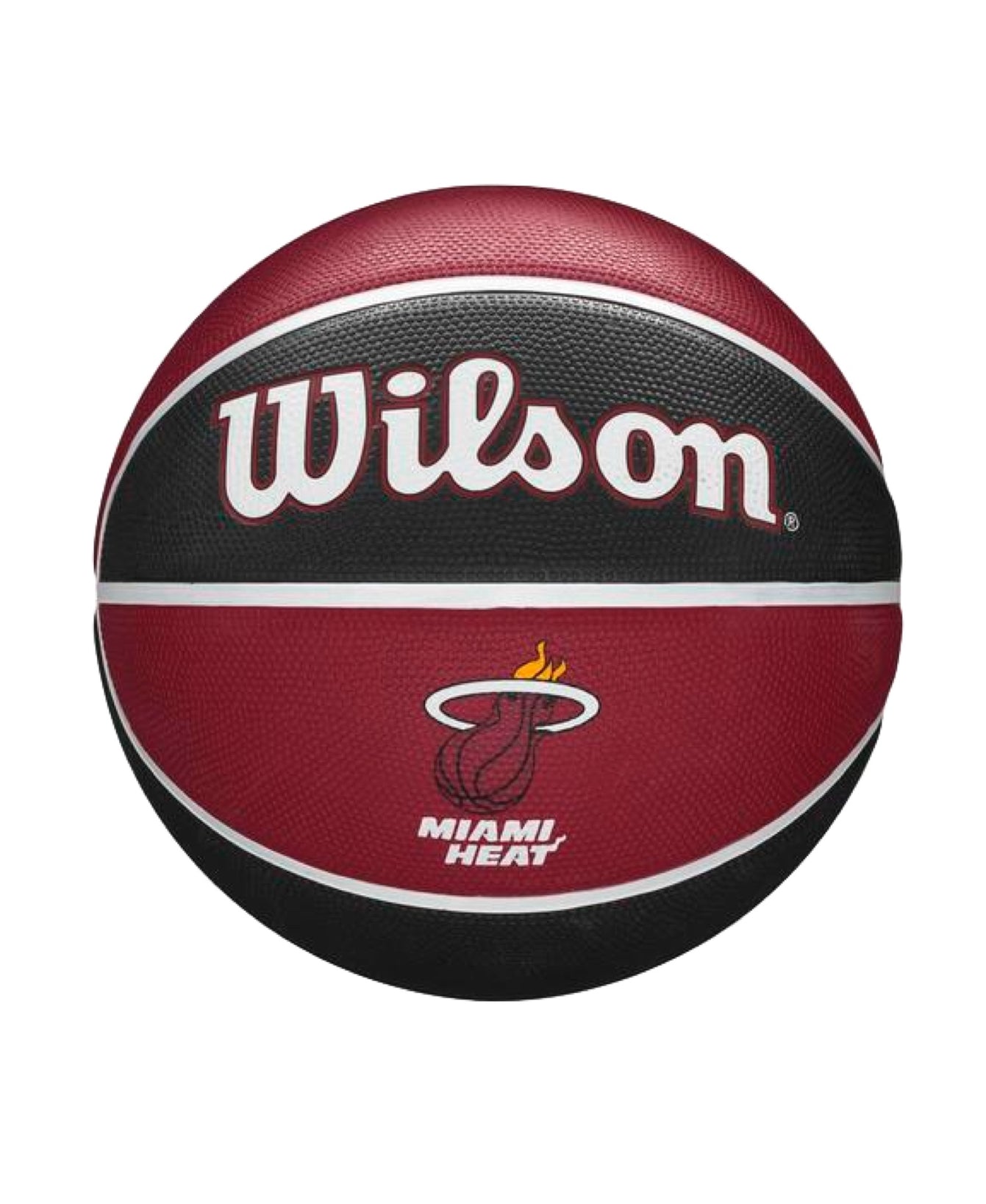 Wilson Miami Heat basketball in red and black with team logo and white Wilson branding.