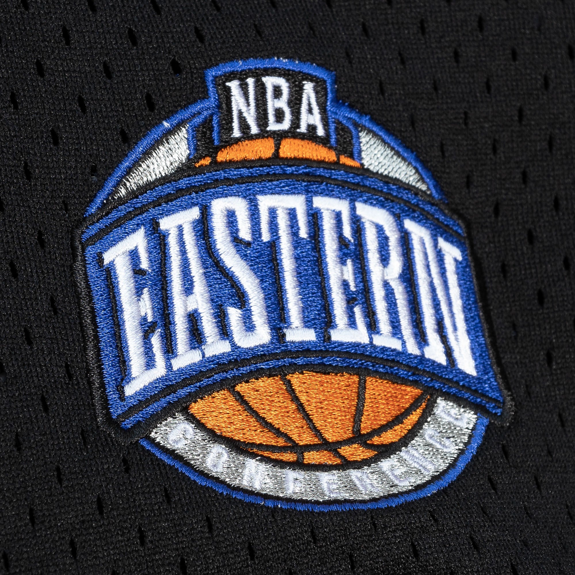 Black and red Miami HEAT mesh V-neck shirt with HEAT lettering and classic patches. - Mitchell & Ness Miami HEAT Hardwood Classic Night Mesh V-Neck