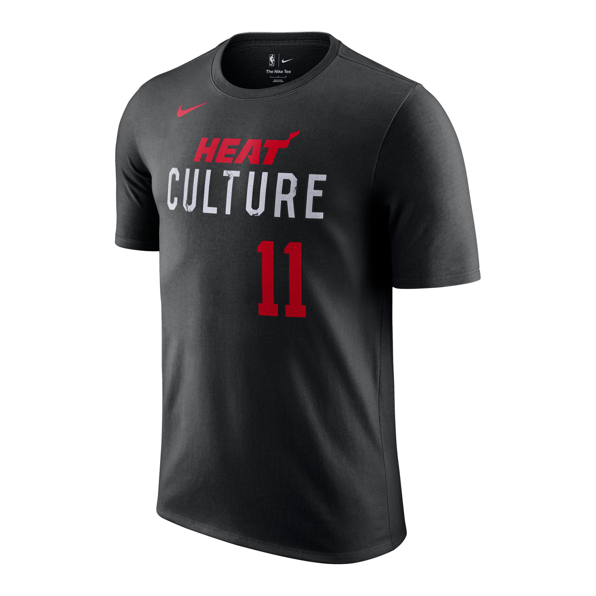 Black Nike T-shirt with red and white Miami HEAT Culture text and red number 11 on front. - Jaime Jaquez Jr. Nike HEAT Culture Name & Number Tee
