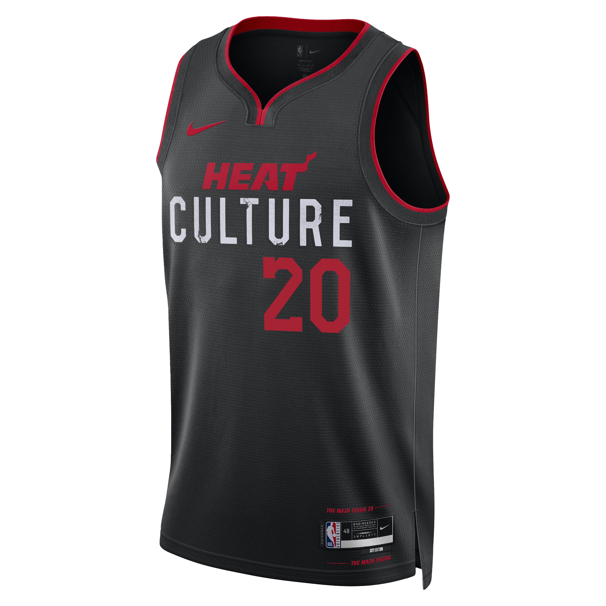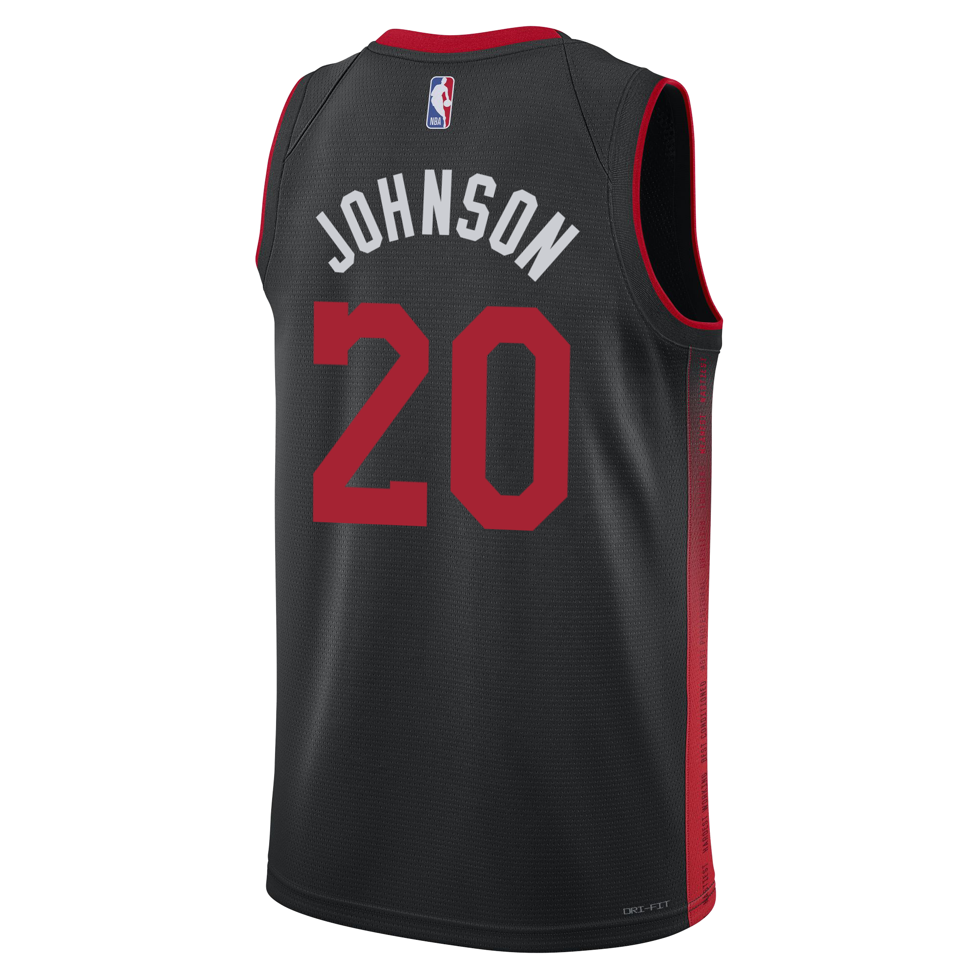 Miami HEAT black Keshad Johnson Swingman jersey with red number 20 and white name on back. - Keshad Johnson Nike HEAT Culture Swingman Jersey