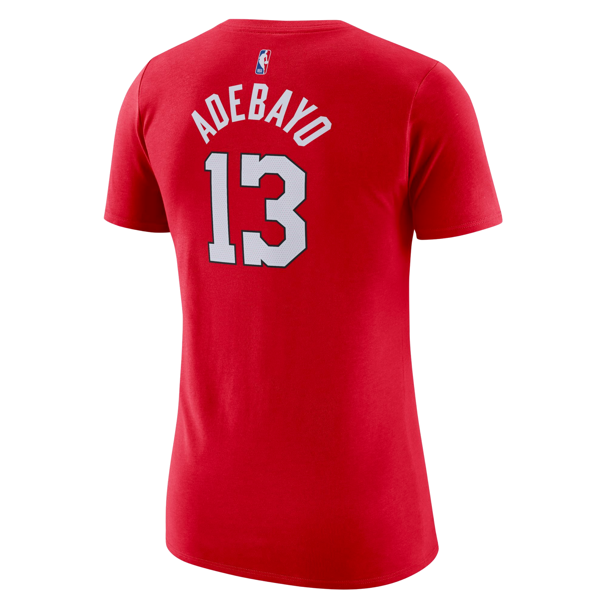 Women’s red Nike tee with “ADEBAYO 13” printed in white on the back, NBA logo above name.