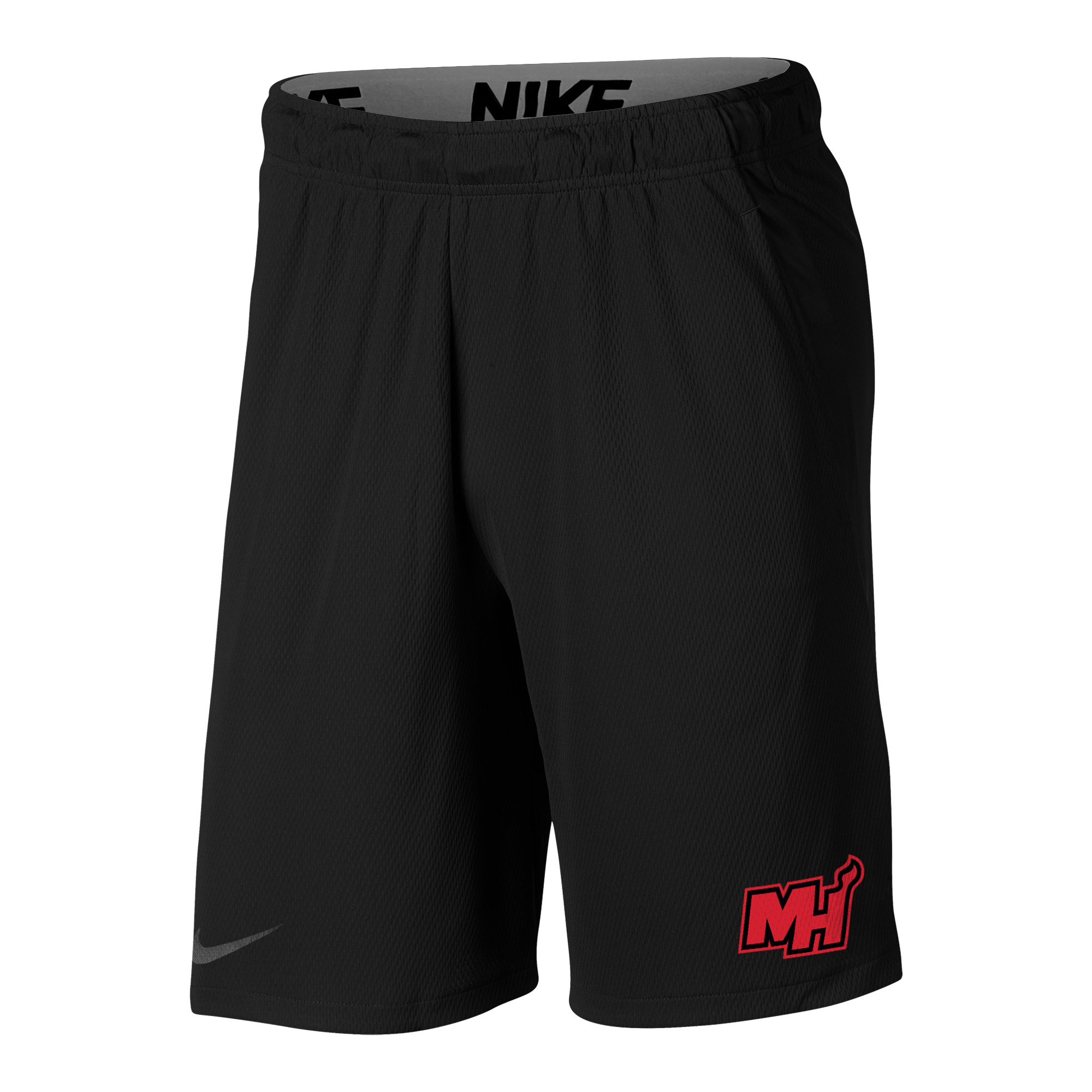 Black Nike HEAT Culture Elite shorts with red Miami HEAT logo and white Nike swoosh. - Nike HEAT Culture Elite Shorts