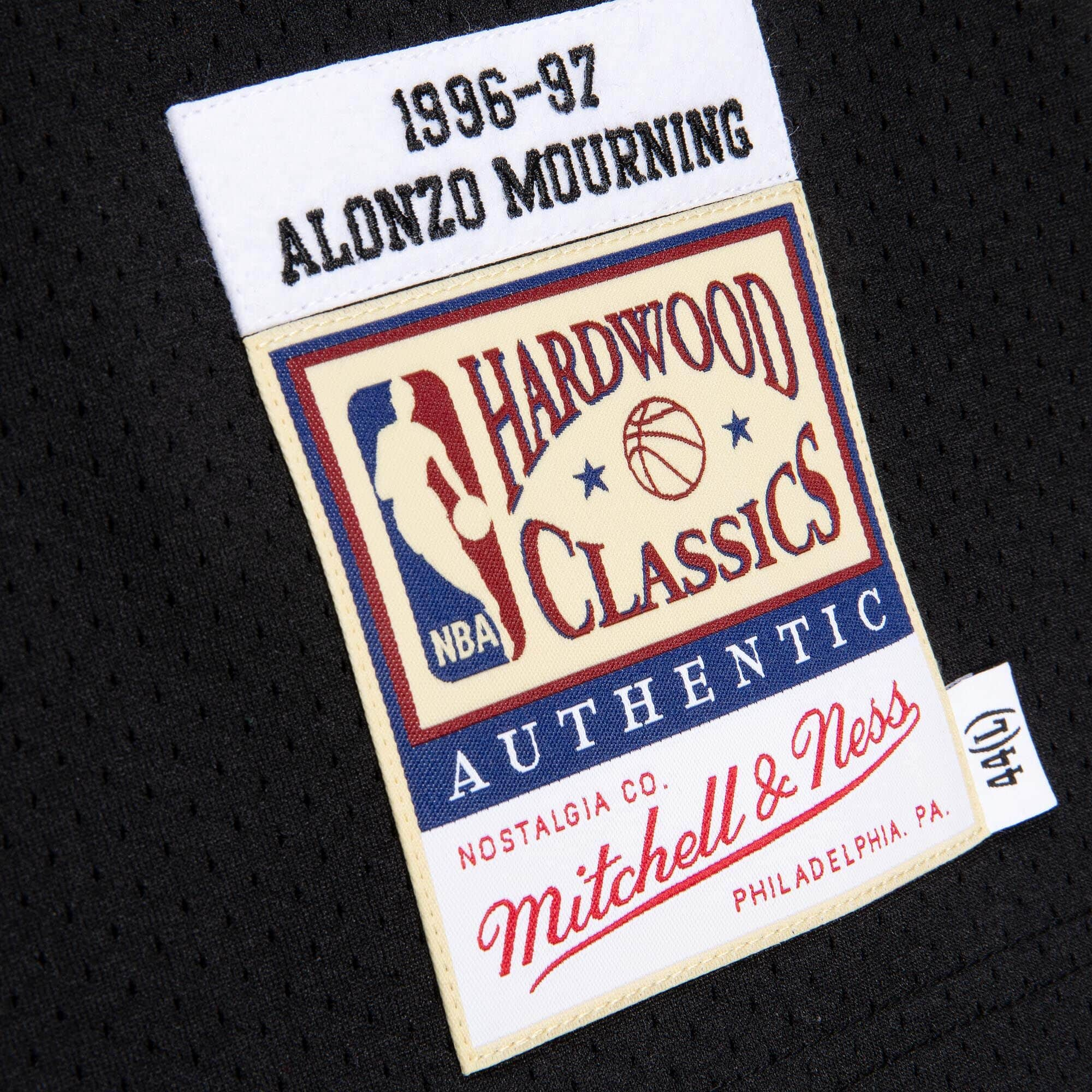 Black Miami HEAT jersey with red and white HEAT lettering and NBA logo patch. - Alonzo Mourning Mitchell and Ness Miami HEAT Authentic Jersey
