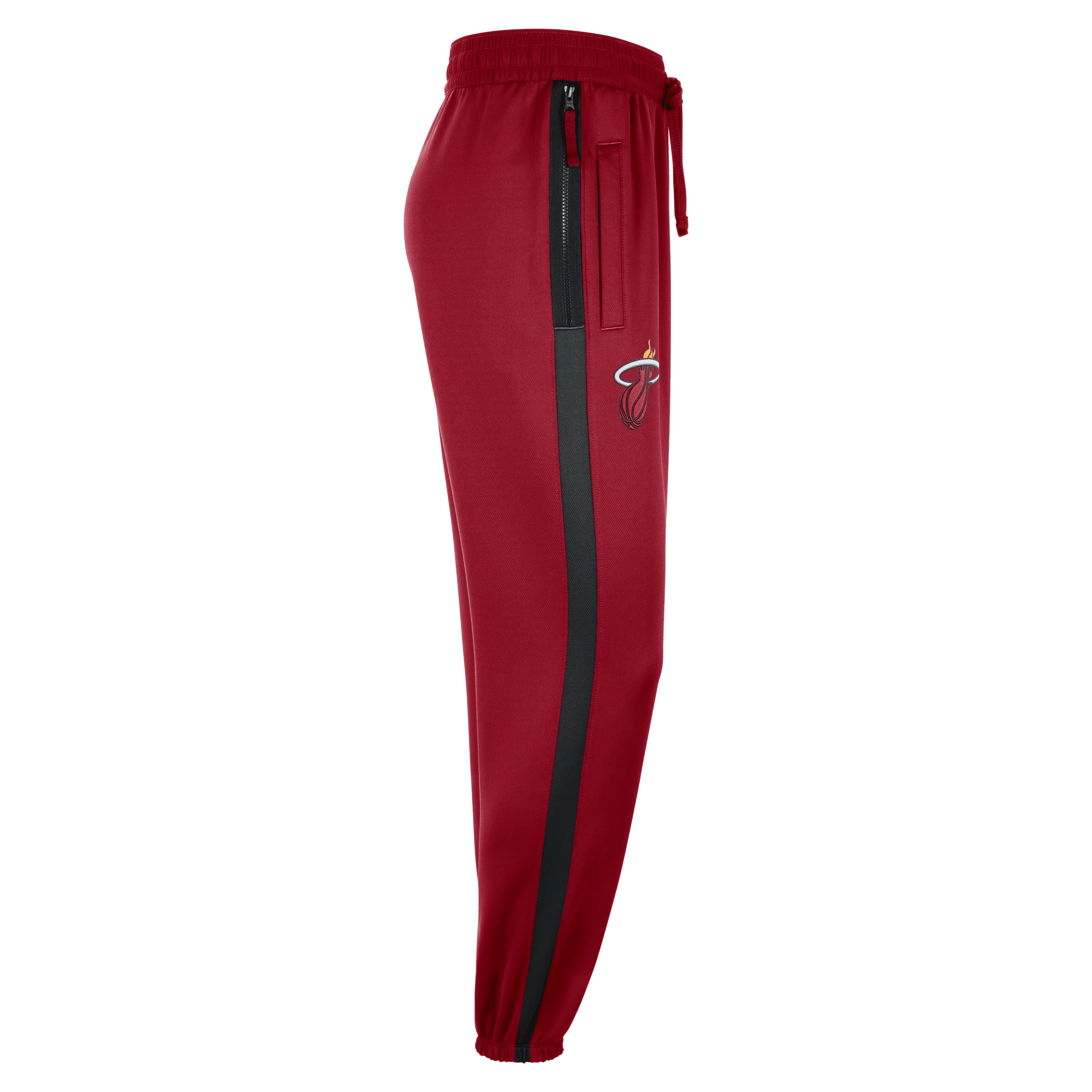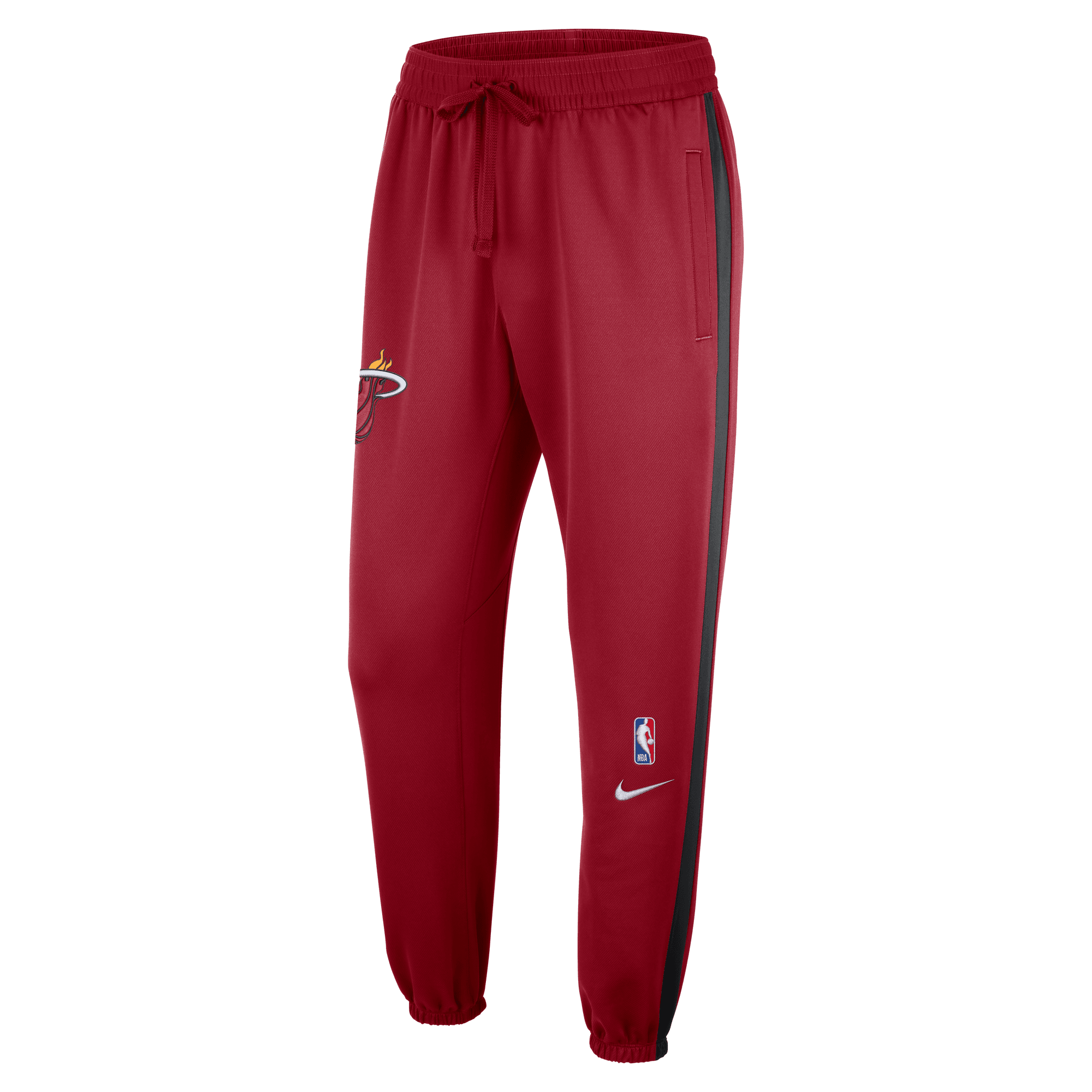 Red Nike Miami HEAT Dri-FIT pants with elastic waistband and tapered cuffs, side stripes. - Nike Miami HEAT Spotlight Dri-FIT Pants