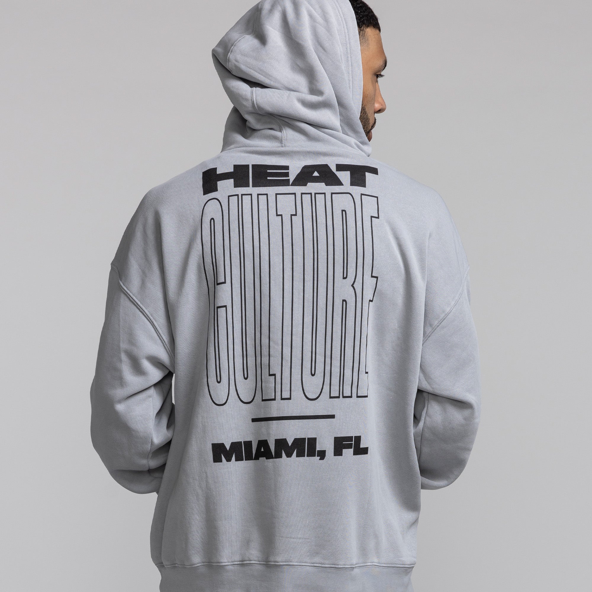 Grey unisex hoodie with black Miami HEAT Culture graphic and
