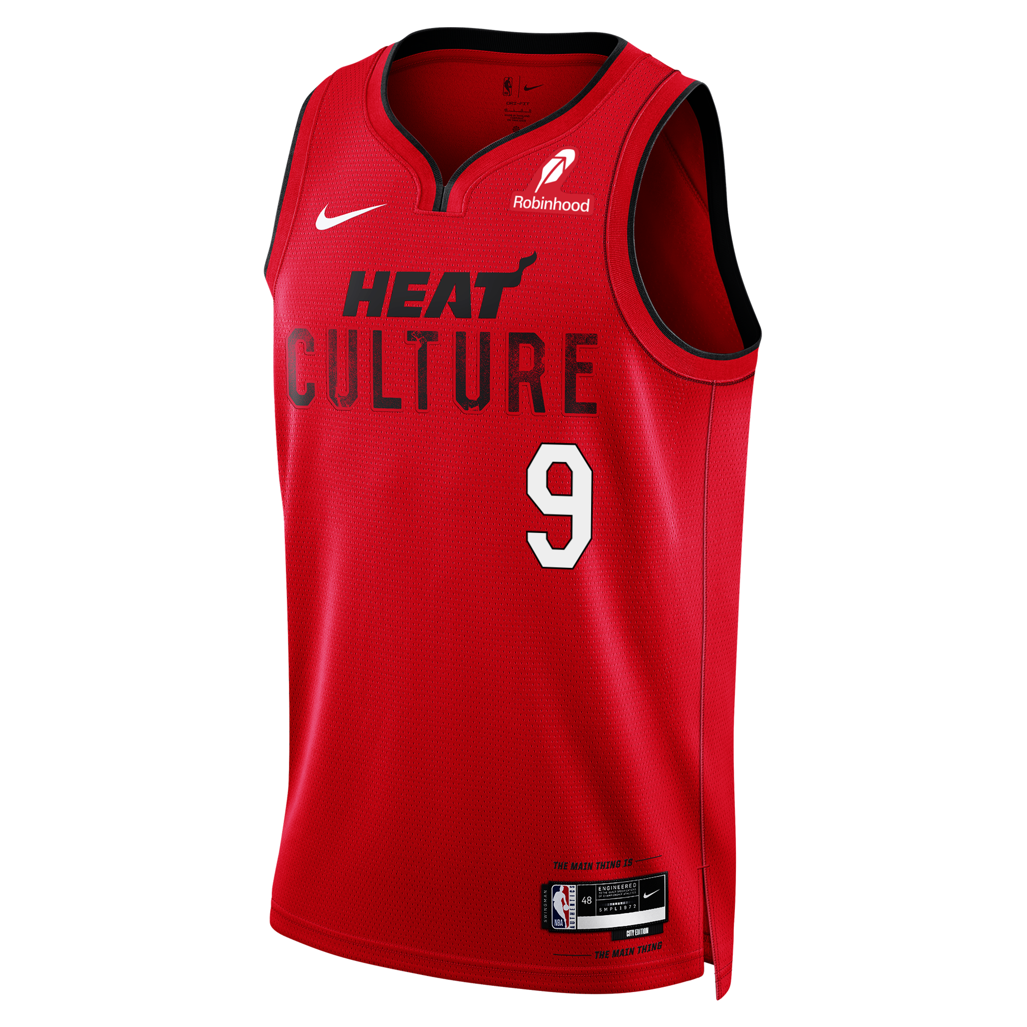 A color flip of 2023-24’s “HEAT Culture” uniform, the 2024-25 edition retains all the elements of its predecessor, save for the base color: a “Blood Red” hue honoring the transformative, win-at-all-costs mentality of HEAT Culture’s architect, Pat Riley. And the symbolism extends to the totality of HEAT history, throughout which red has been donned during Championship-clinching games, record-breaking win streaks, and other moments that retrace HEAT Culture’s rise from new norm to ingrained standard. Because it’s one thing to set that standard—it’s another to live it; to bear the scars and embrace the stakes; to literally, unapologetically “Bleed HEAT Red”.