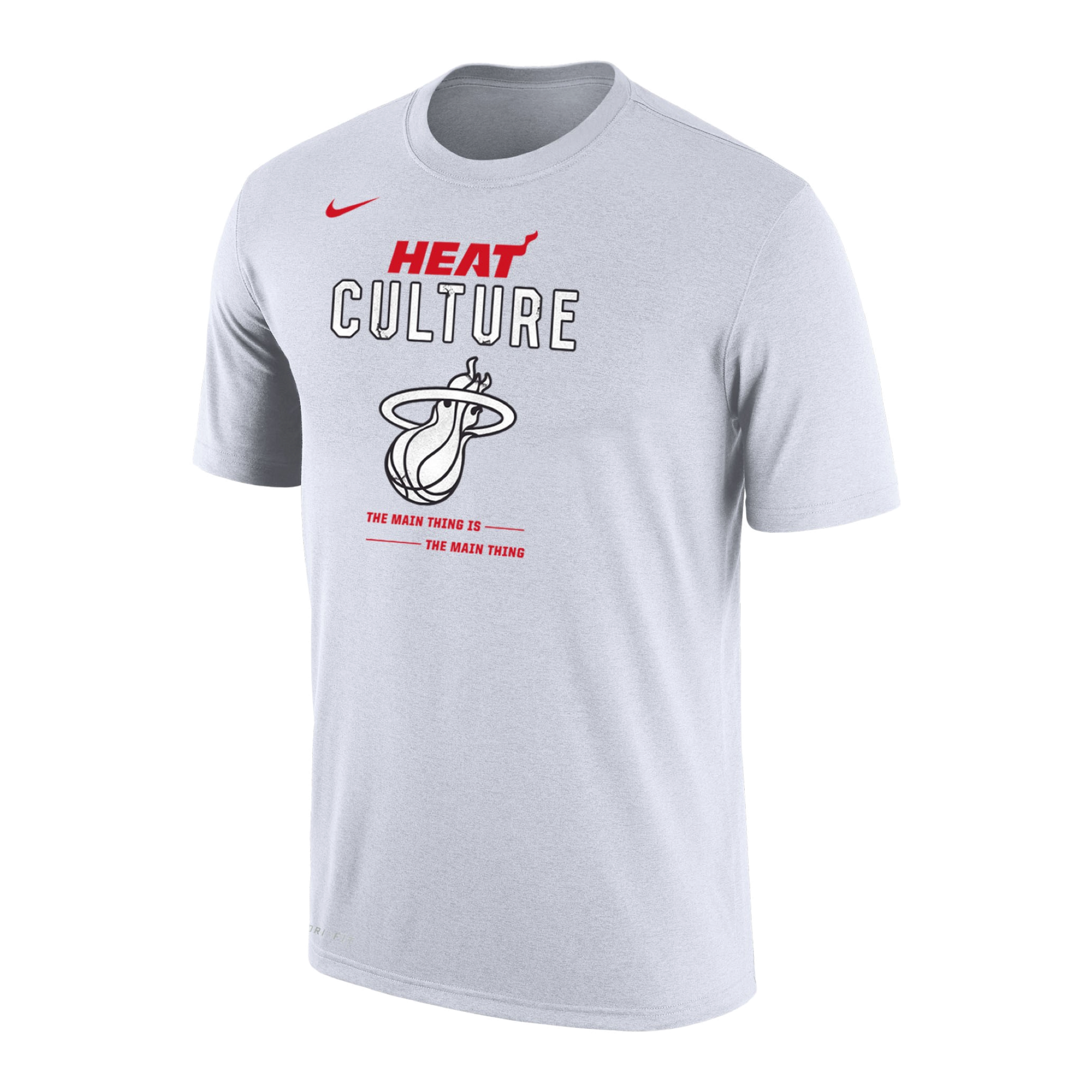 White Nike Miami HEAT Culture Legend tee with red and black graphic logo. - Nike HEAT Culture Legend White Tee