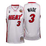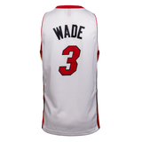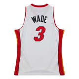 White Miami HEAT swingman jersey with red trim, Wade 3 name and number on back. - Dwyane Wade Mitchell & Ness Miami HEAT 2005-06 White Swingman Jersey - HOF Edition
