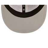 Gray underbill and black inner headband of a New Era Miami HEAT 2022 Draft snapback with size label visible.