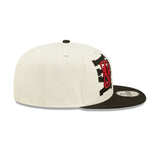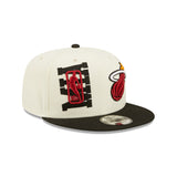 Miami HEAT 2022 Draft snapback with cream crown, black flat brim, and embroidered red and black logos.