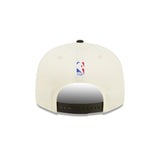 Cream-colored New Era snapback cap with black adjustable strap and NBA logo on the back panel.