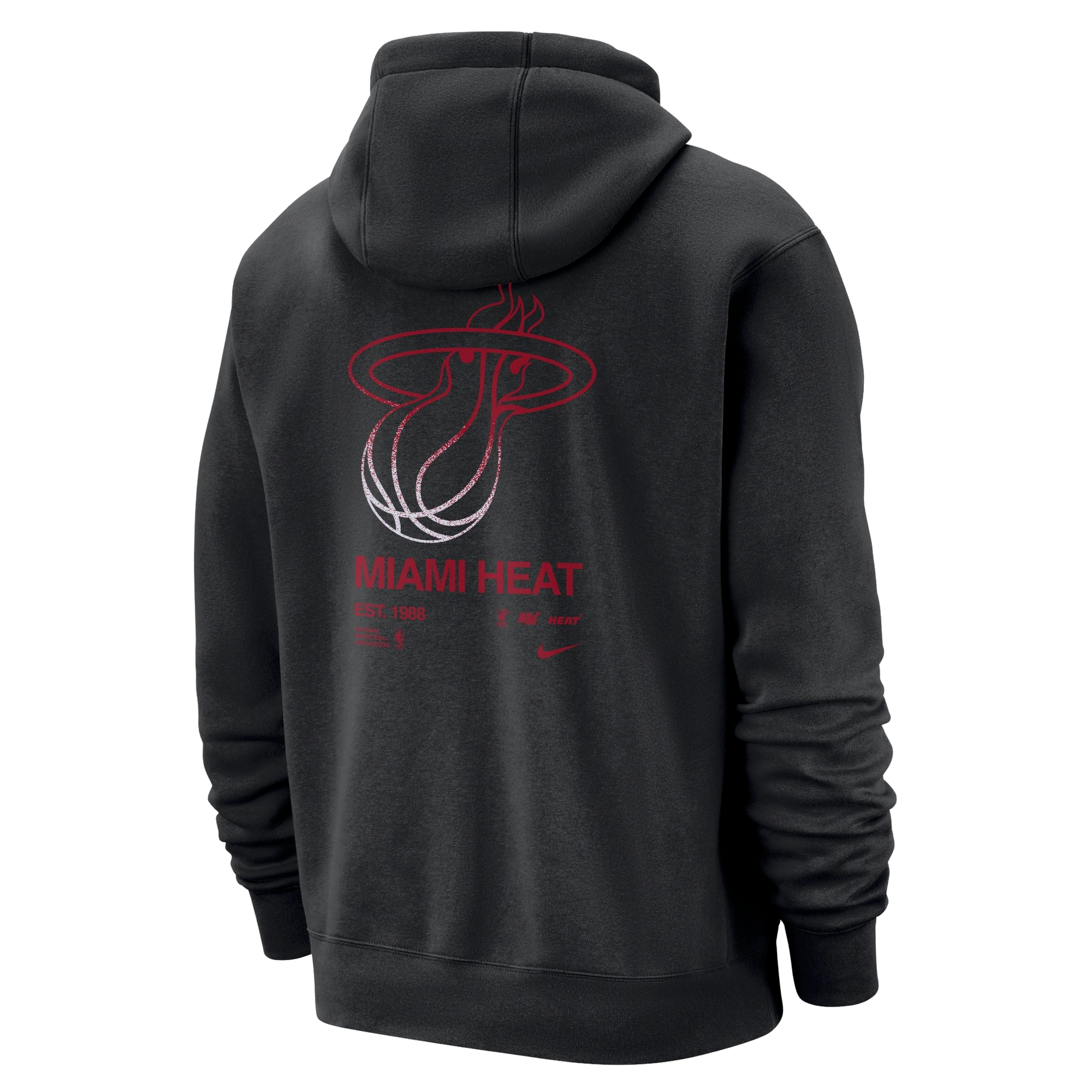 Black Nike pullover hoodie with red Miami HEAT logo and text on the back, men's XL size. - Nike Miami HEAT 2024 Club Pullover Hoodie