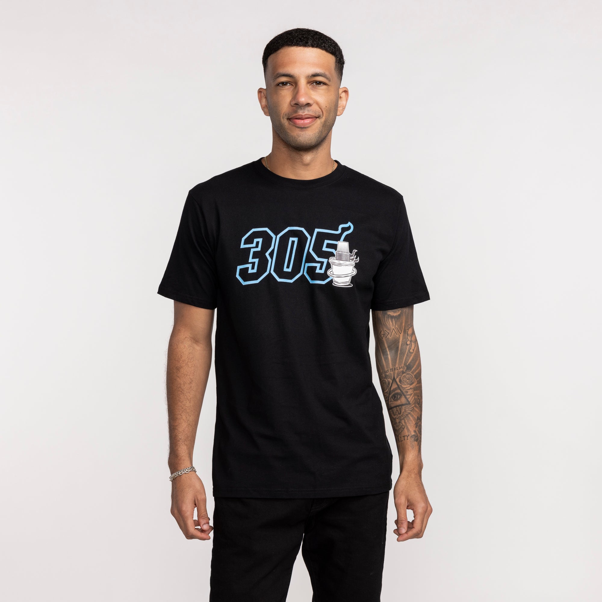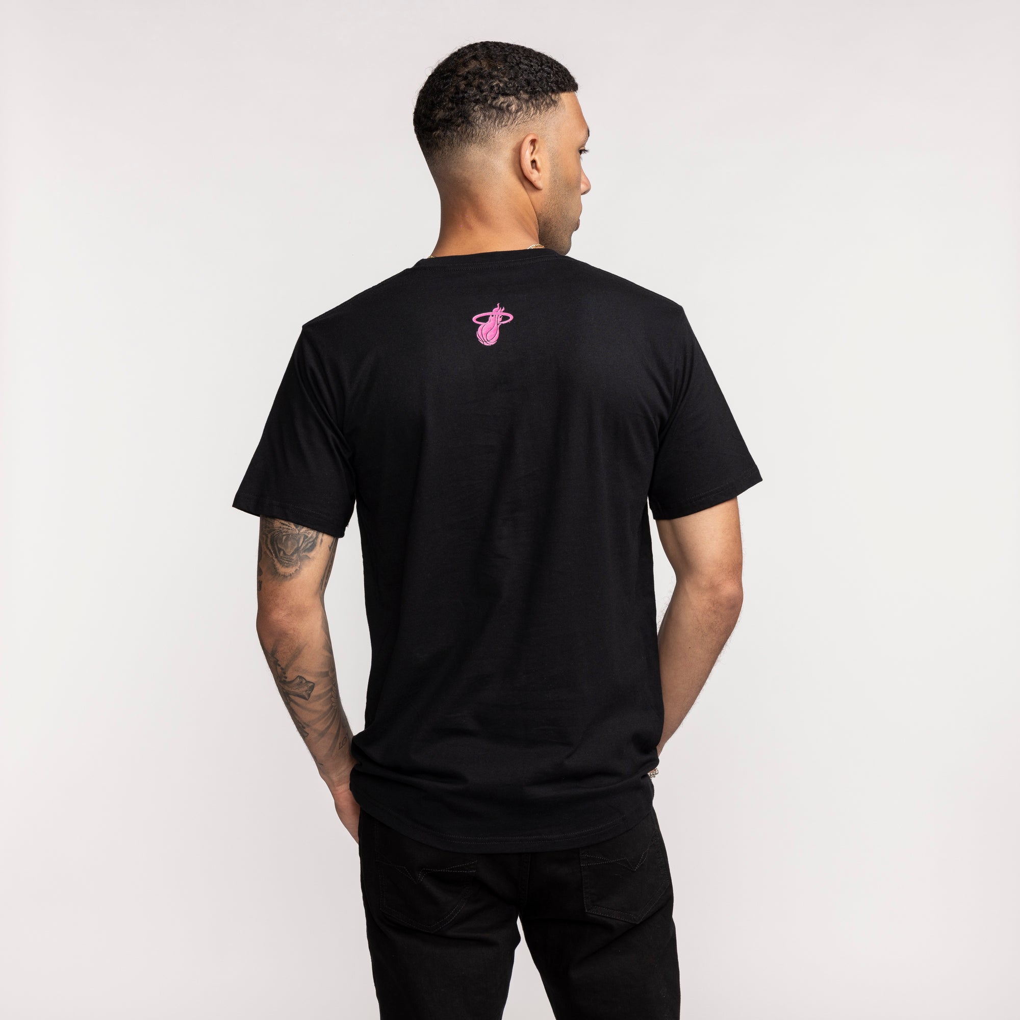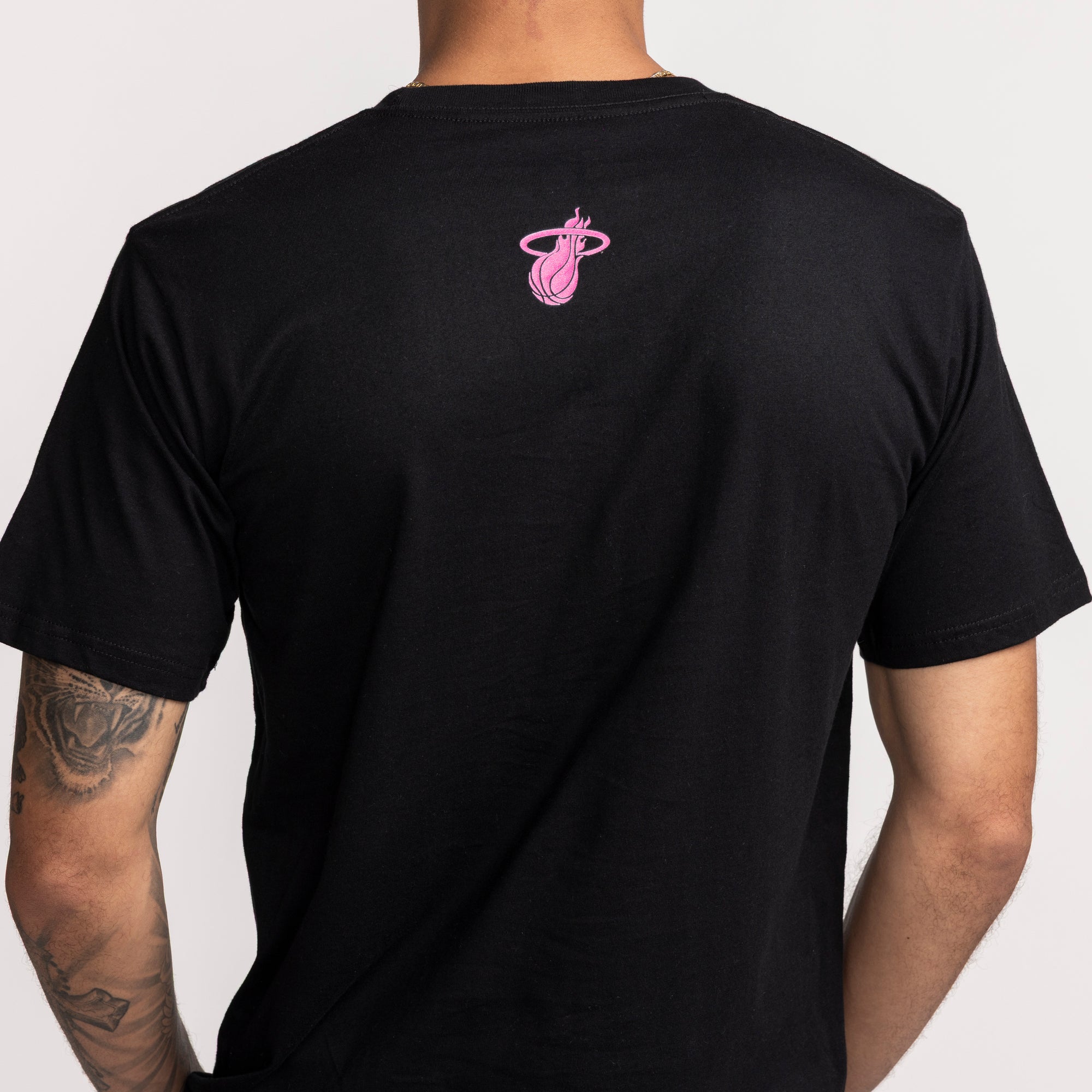 Black Court Culture tee with small pink Miami HEAT logo on upper back, short sleeves. - Court Culture