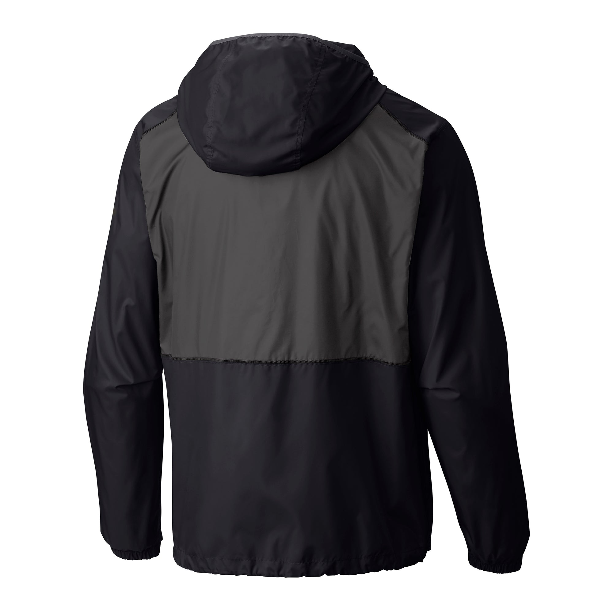 Black and dark gray Columbia Miami HEAT windbreaker jacket with hood, back view. - Columbia Miami HEAT Logo Flash Windbreaker Jacket