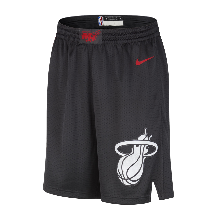 Black Nike Swingman shorts with red Miami HEAT logo and red swoosh on left leg. - Nike HEAT Culture Swingman Shorts