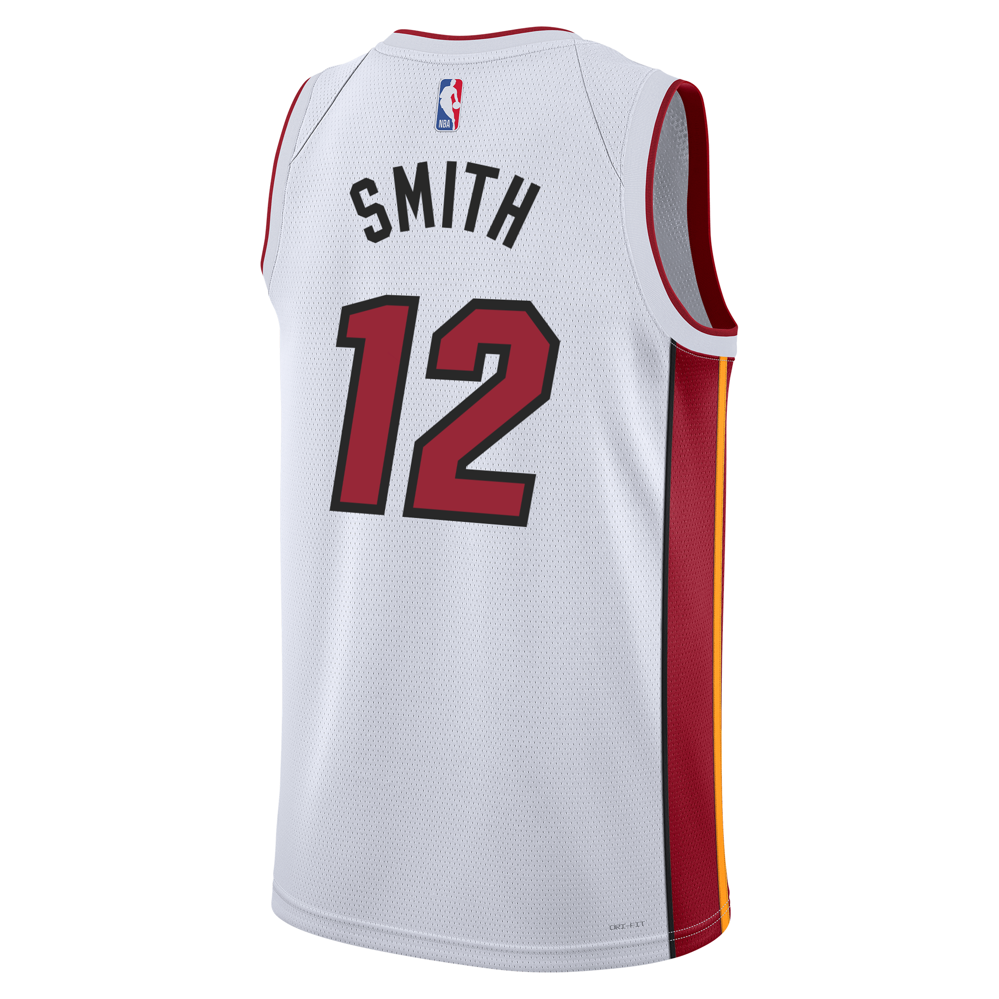 White Miami HEAT swingman jersey with red trim, number 12 and Smith name on back. - Dru Smith Nike Miami HEAT Association White Swingman Jersey