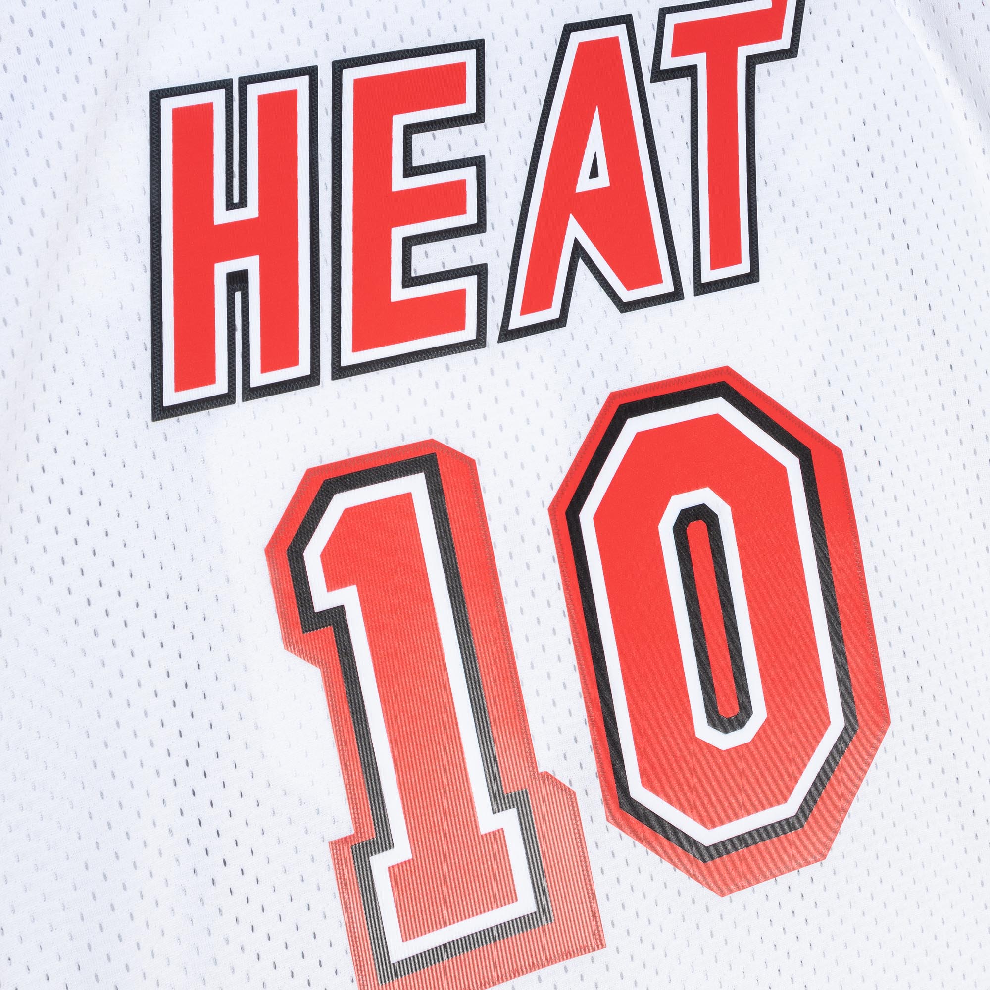 White Miami HEAT 1996-97 Swingman jersey with red number 10 and Mitchell & Ness patch. - Tim Hardaway Mitchell & Ness Miami HEAT 1996-97 Swingman Jersey