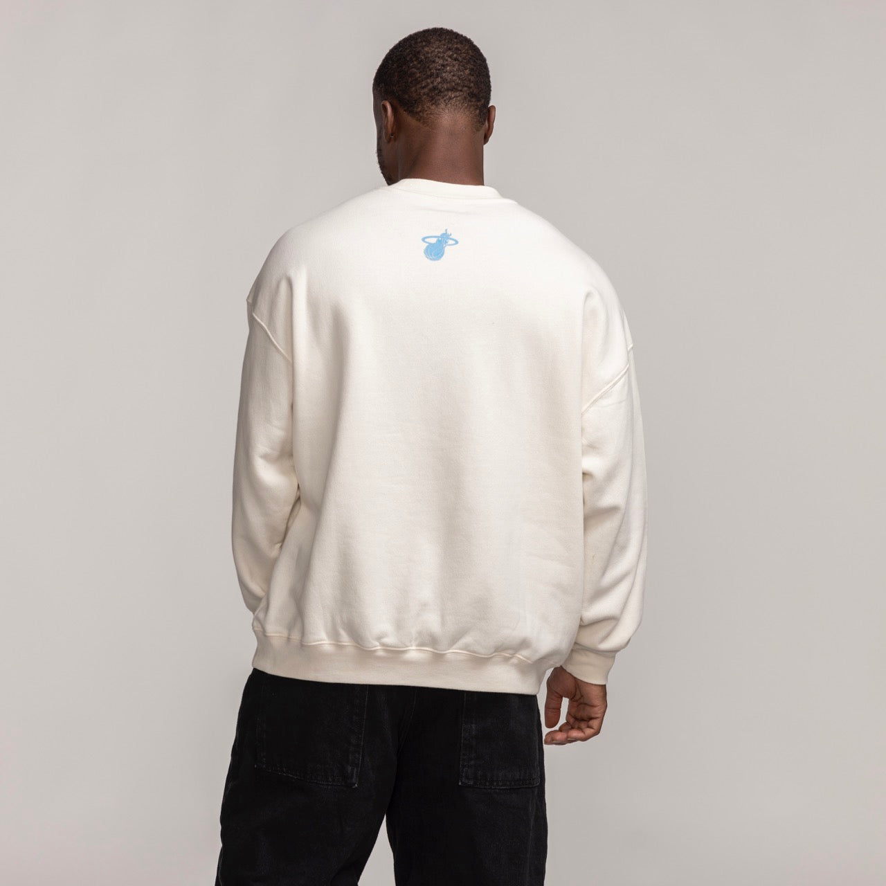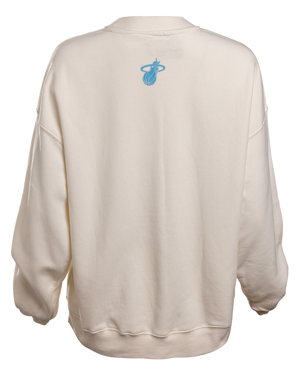 Ivory crewneck sweatshirt with small blue Miami HEAT logo on back, long sleeves, relaxed fit. - Court Culture Original Vice