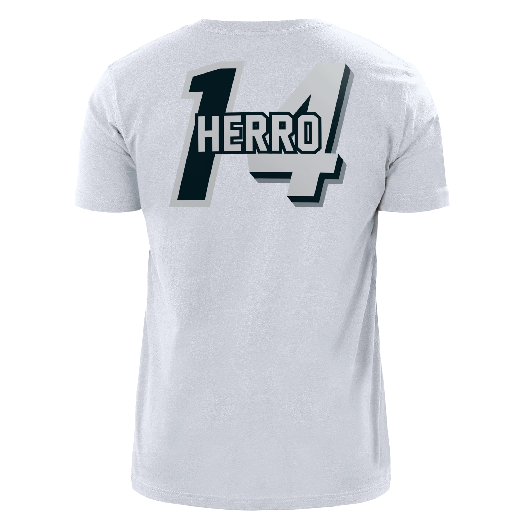 White Miami HEAT tee with Tyler Herro number 14 mashup graphic on back. - Tyler Herro New Era Miami HEAT Mashup Name & Number White Tee