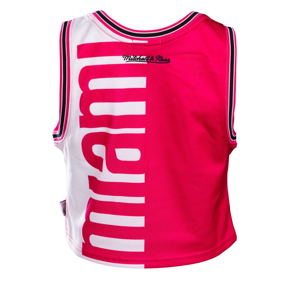 Miami HEAT pink and white mesh crop tank with bold vertical