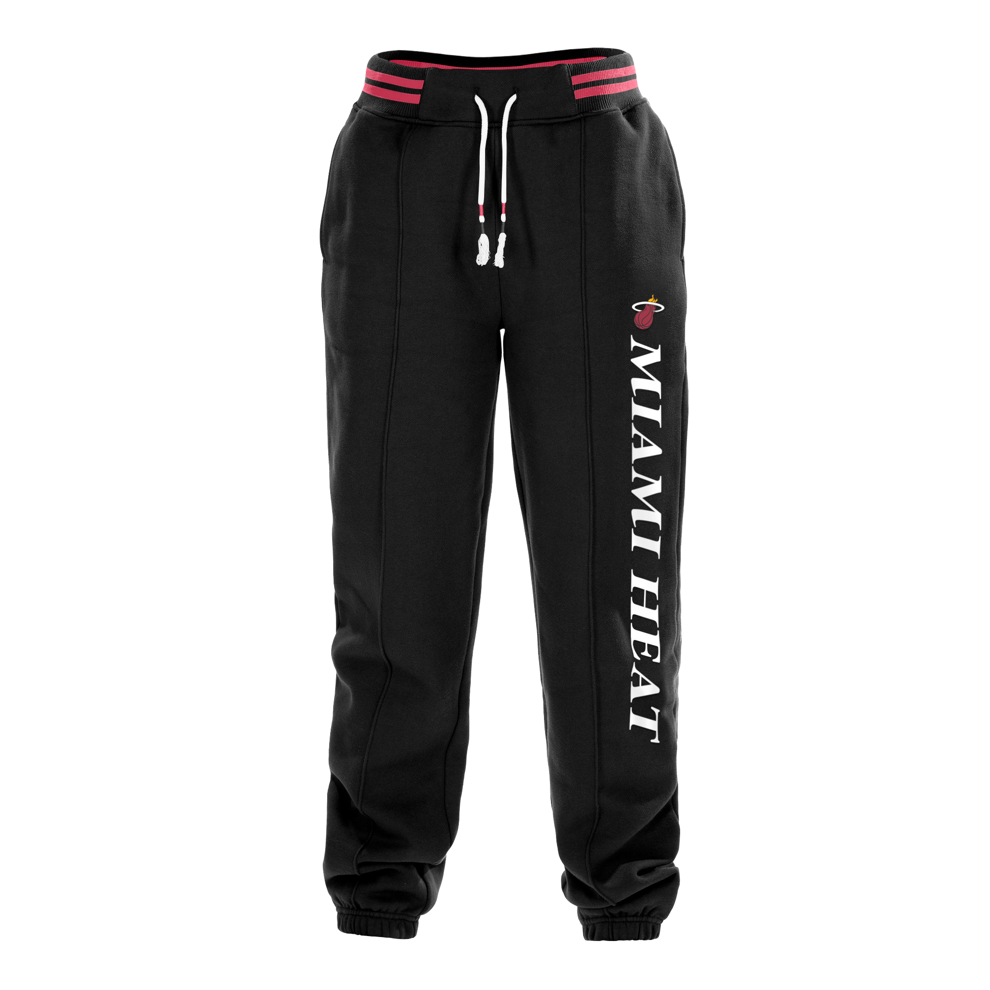 Black women's joggers with Miami HEAT logo and white drawstring waistband with red and white stripes.