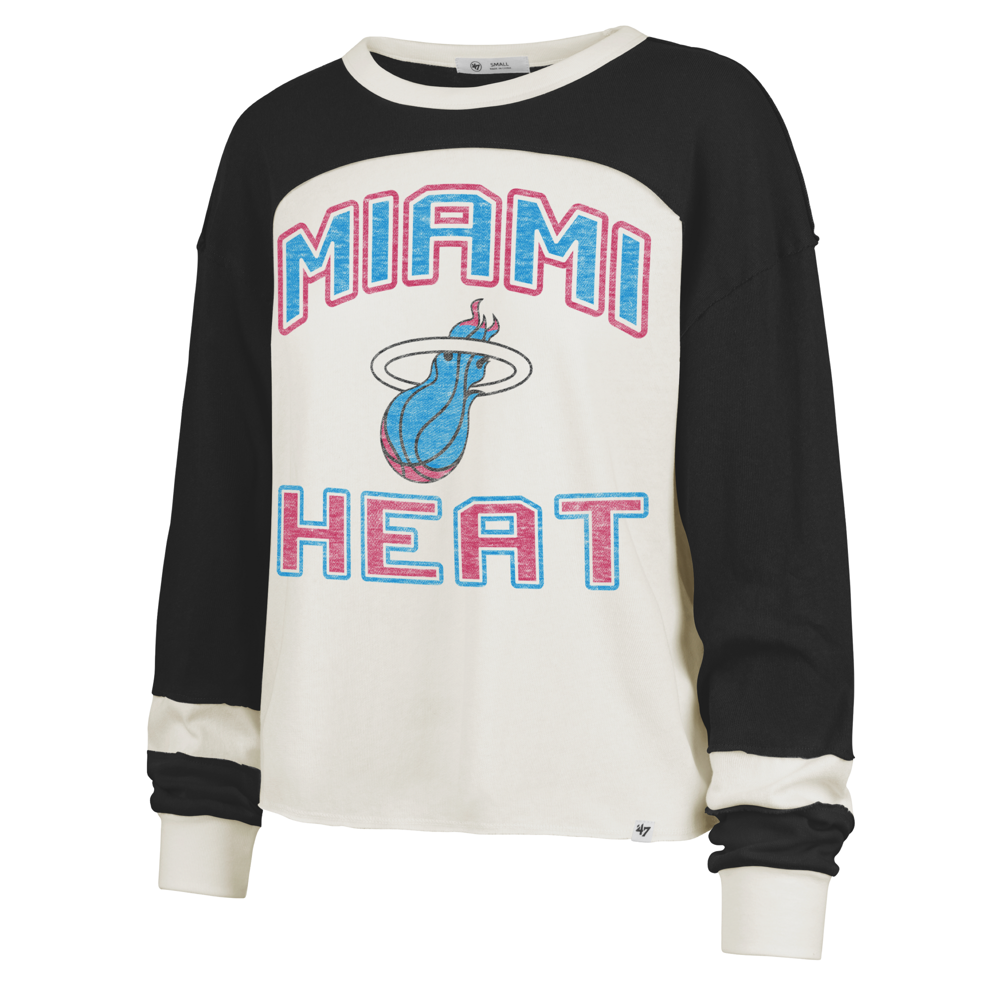 Made from 100% cotton, this Miami HEAT shirt features contrast team color sleeves for a two-tone look and distressed graphics of the team wordmark and logo for a vintage feel. The dropped shoulders provide a relaxed fit and casual look, making it a perfect choice for everyday wear.