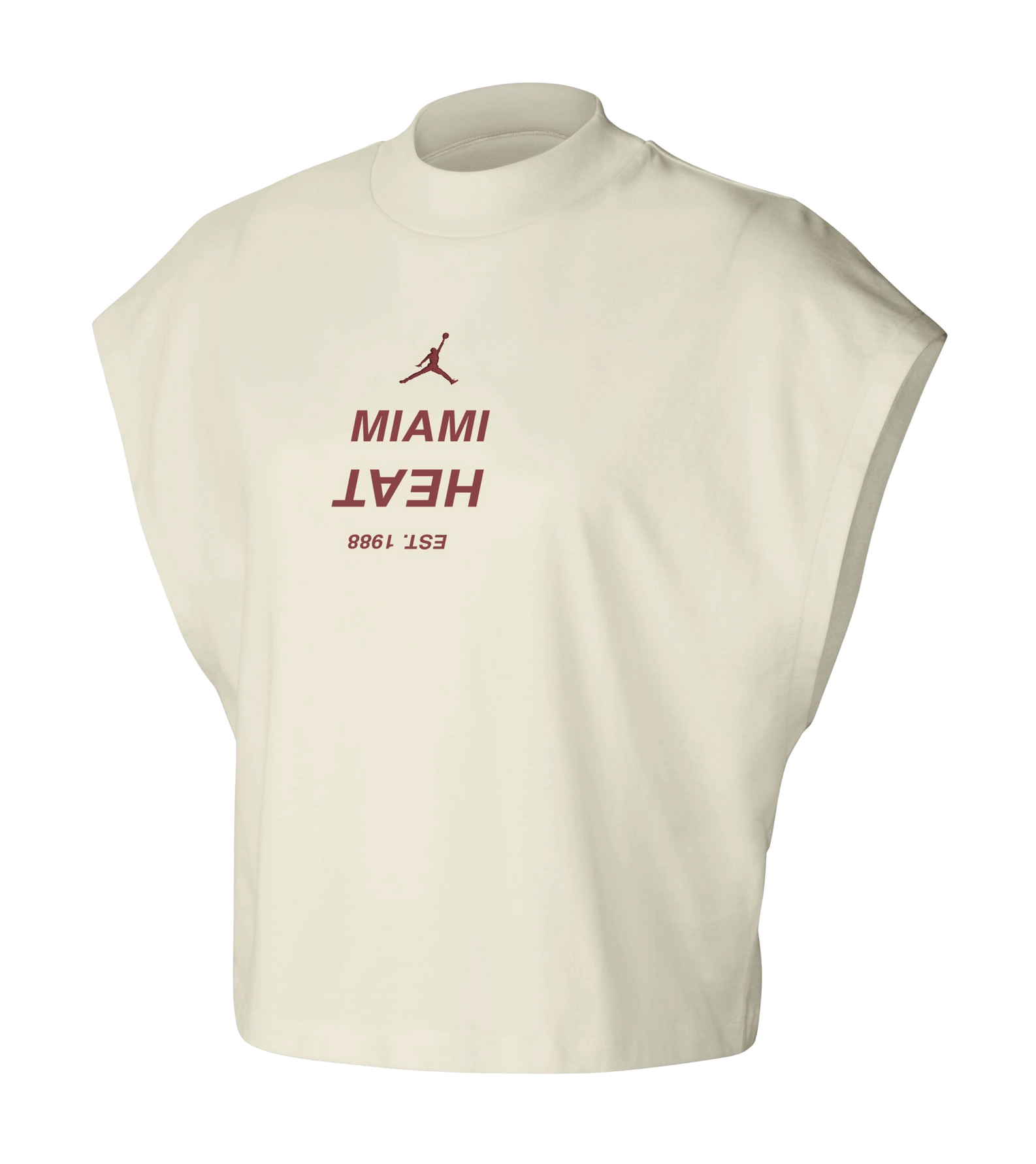 Cream sleeveless Nike muscle top with maroon Miami HEAT logo and text on front. - Nike Miami HEAT Women's Muscle Top