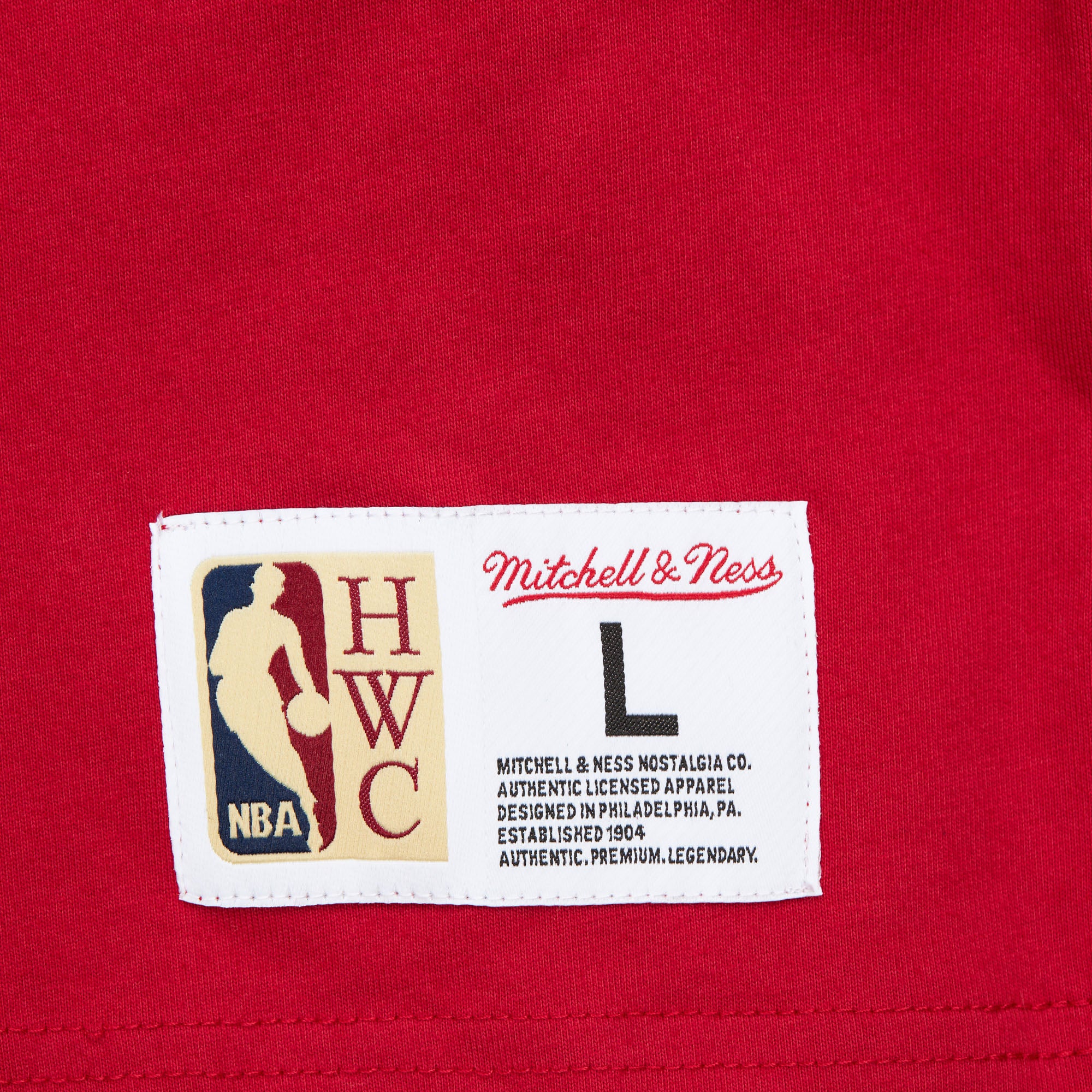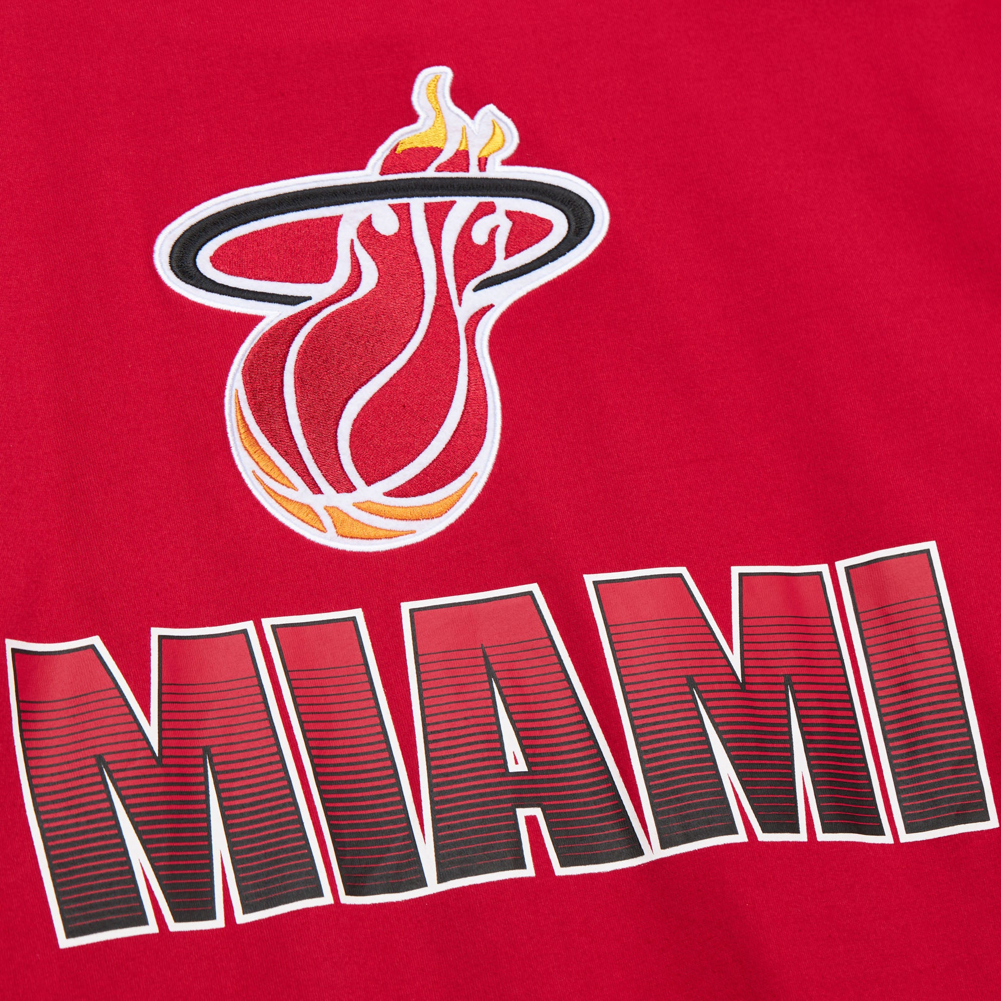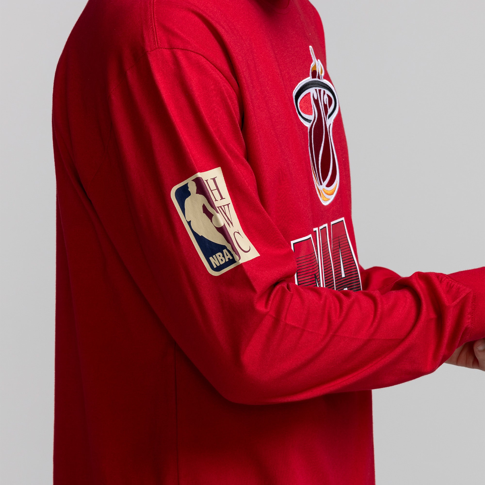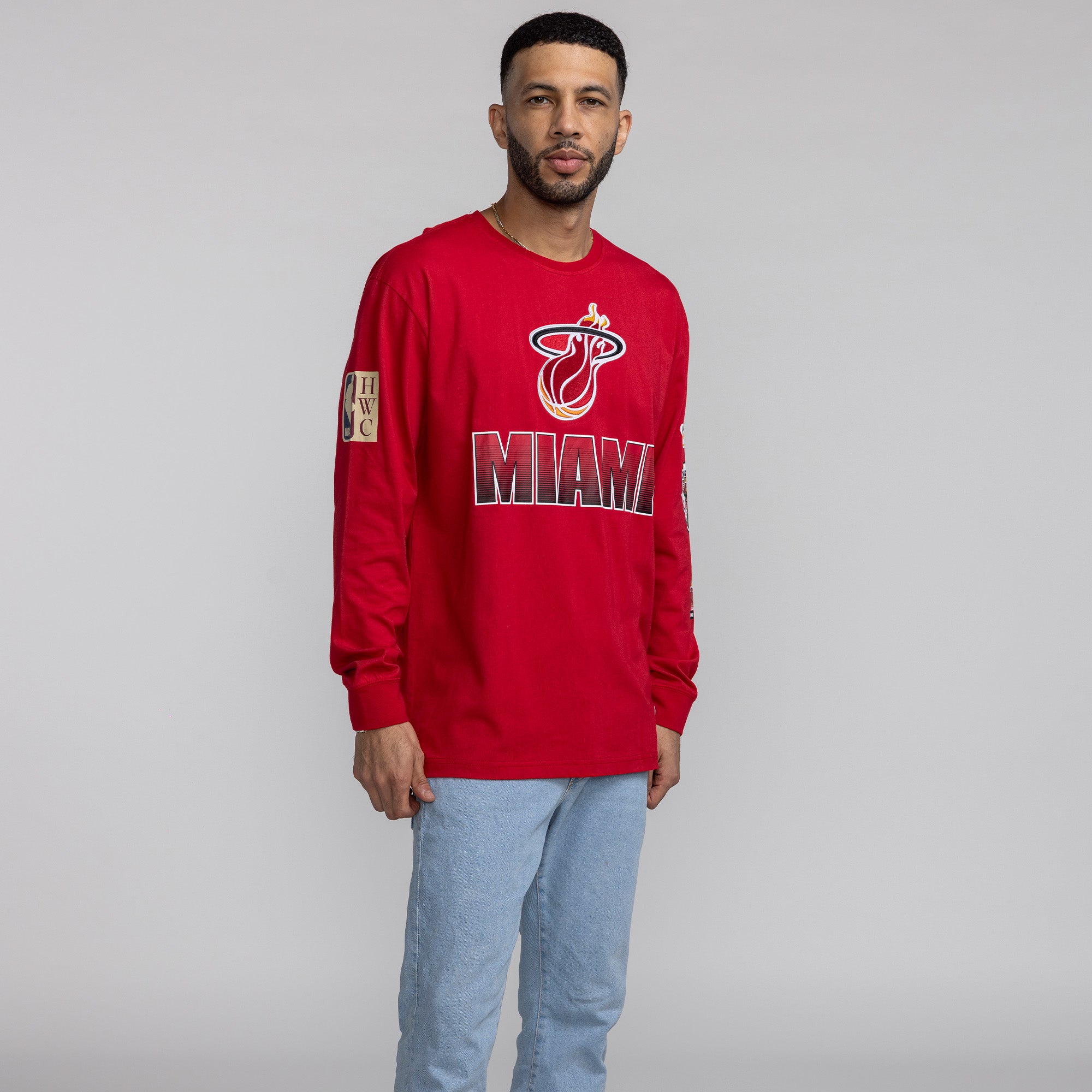 Red Mitchell & Ness Miami HEAT vintage long sleeve tee with NBA HWC patch. - Mitchell & Ness Miami HEAT Allover Vintage Long Sleeve Tee