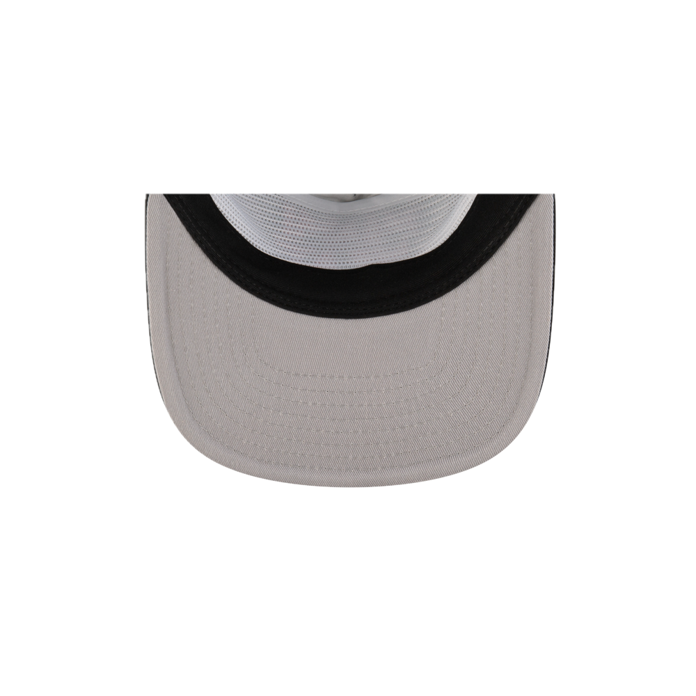 Gray and black snapback cap with black inner sweatband and curved brim stitching.