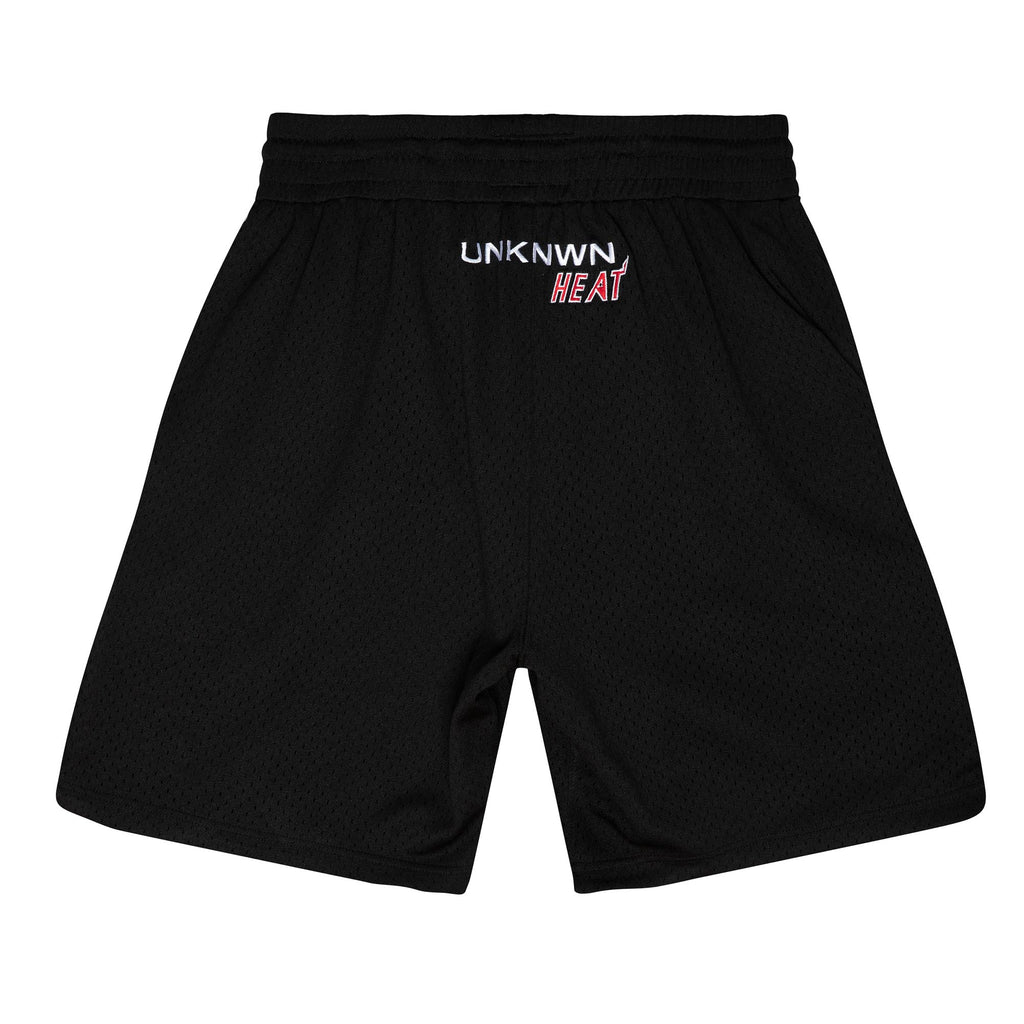 Black UNKNWN x Mitchell and Ness Miami HEAT shorts with mesh fabric and logo embroidery on back waistband. - UNKNWN X Mitchell and Ness X Miami HEAT My Towns Fashion Shorts