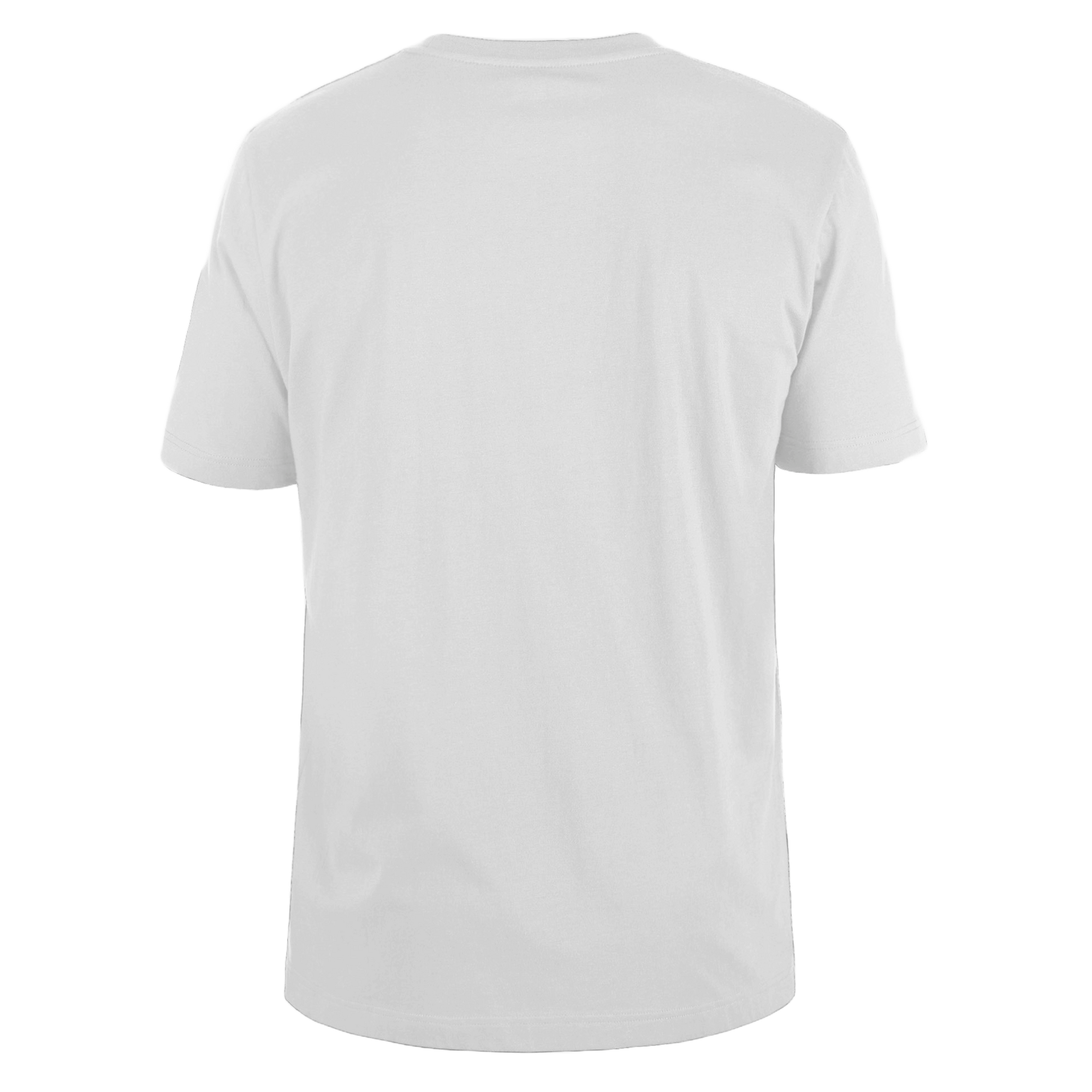 White short-sleeve New Era Miami HEAT tee, solid back, casual fit, men's sizes. - New Era Miami HEAT Slash Tee
