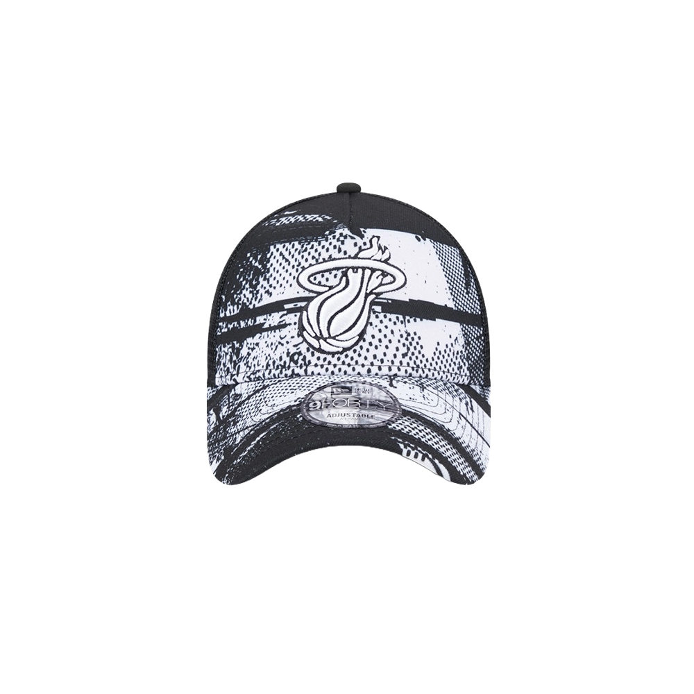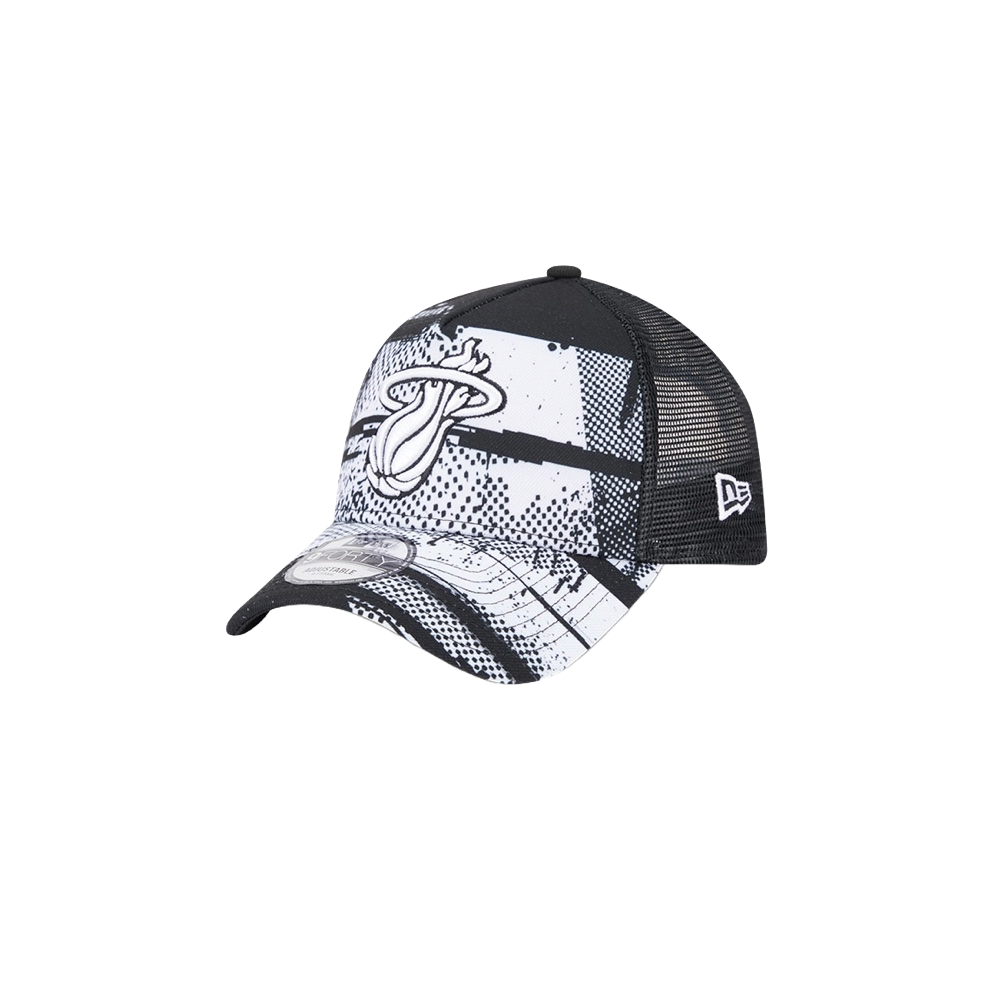 New Era Miami HEAT 2024 Tipoff Black and White Trucker Snapback